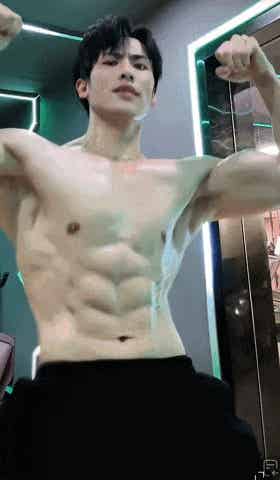 秀出一副极品好身材的男生,