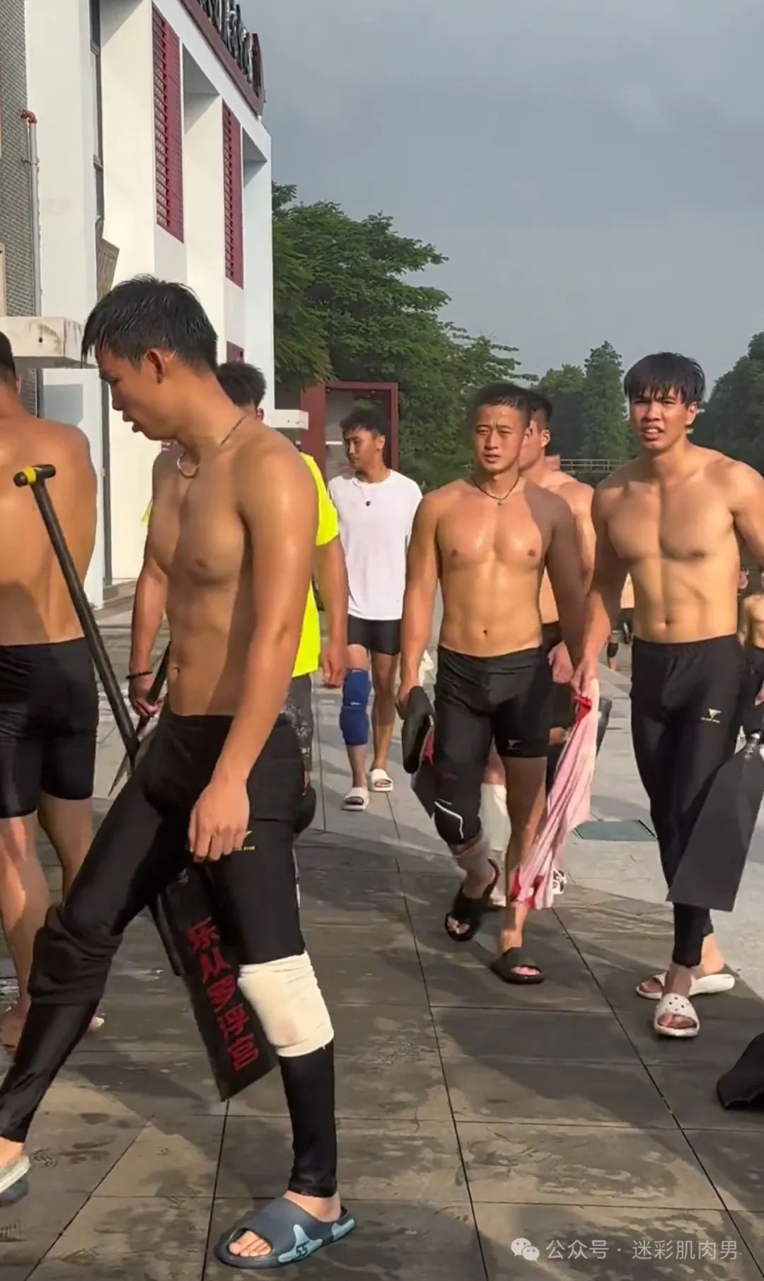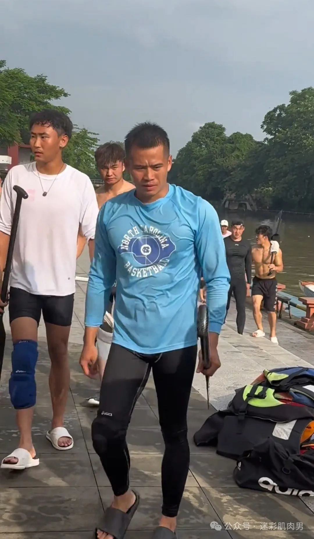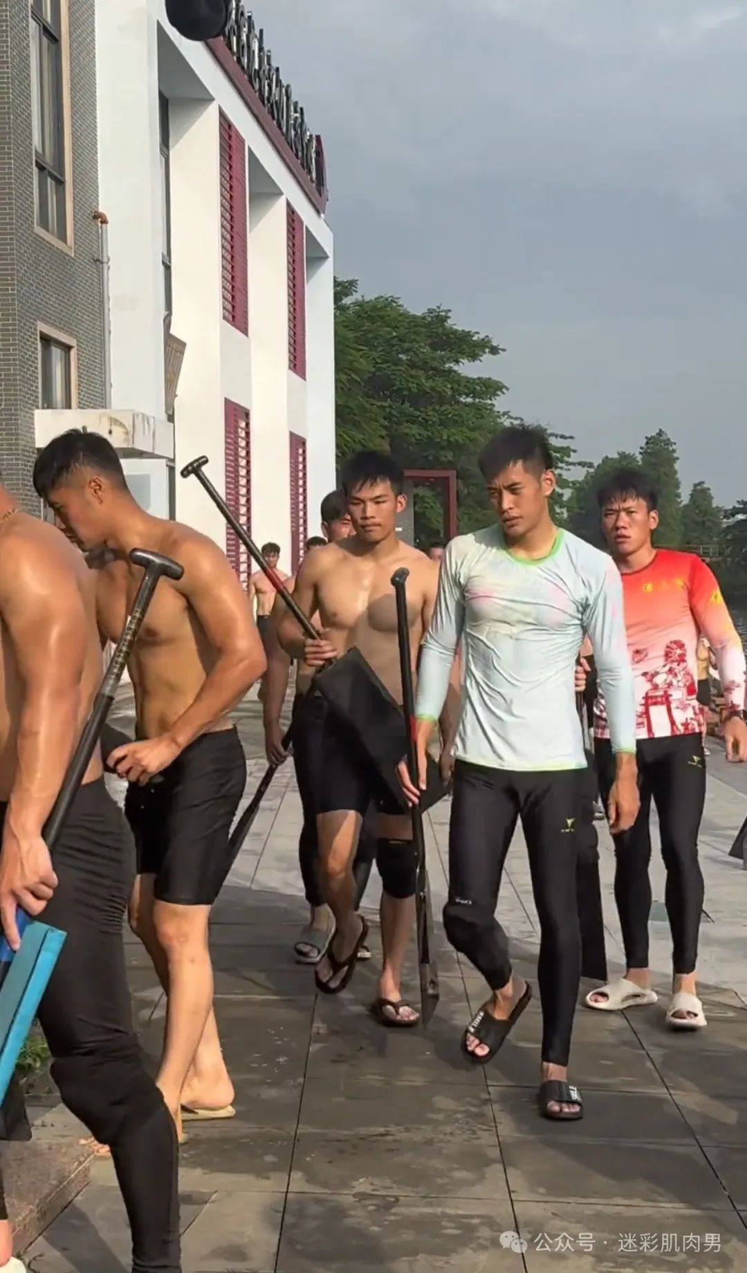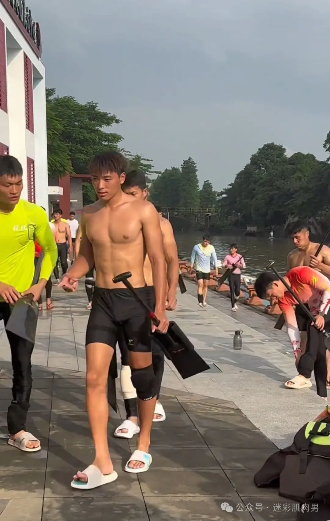 划龙舟穿紧身裤的运动男边走边脱?