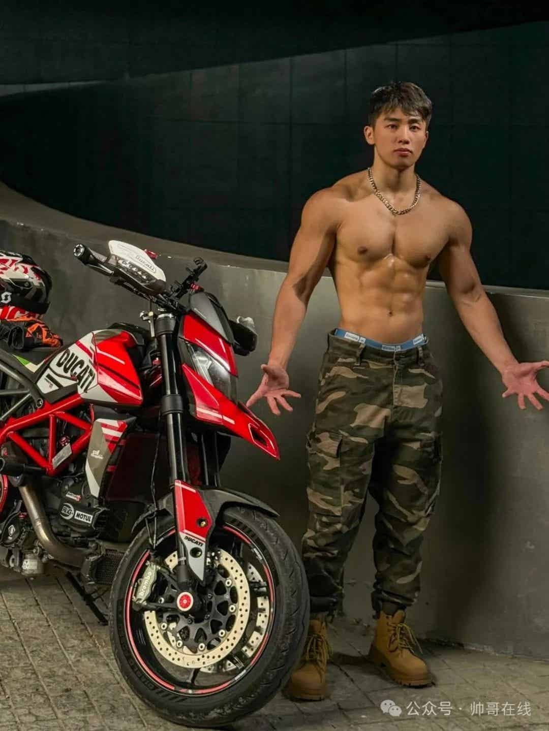 巧克力一样的腹肌,配上硬朗炫酷的机车,这样的组合简直是吸睛神器。而且“肌肉与摩托车”更是硬汉的标配,你还别不信,你可以想象一下,一位肌肉男神骑着摩托的画面,简直是荷尔蒙爆棚的节奏啊!