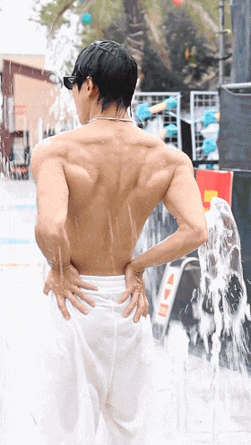 阳光的笑脸与顺着脸蛋流下的水珠,