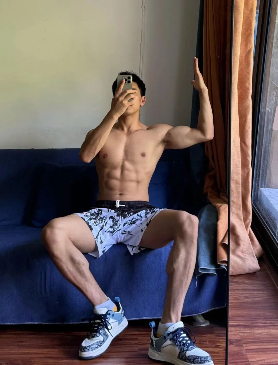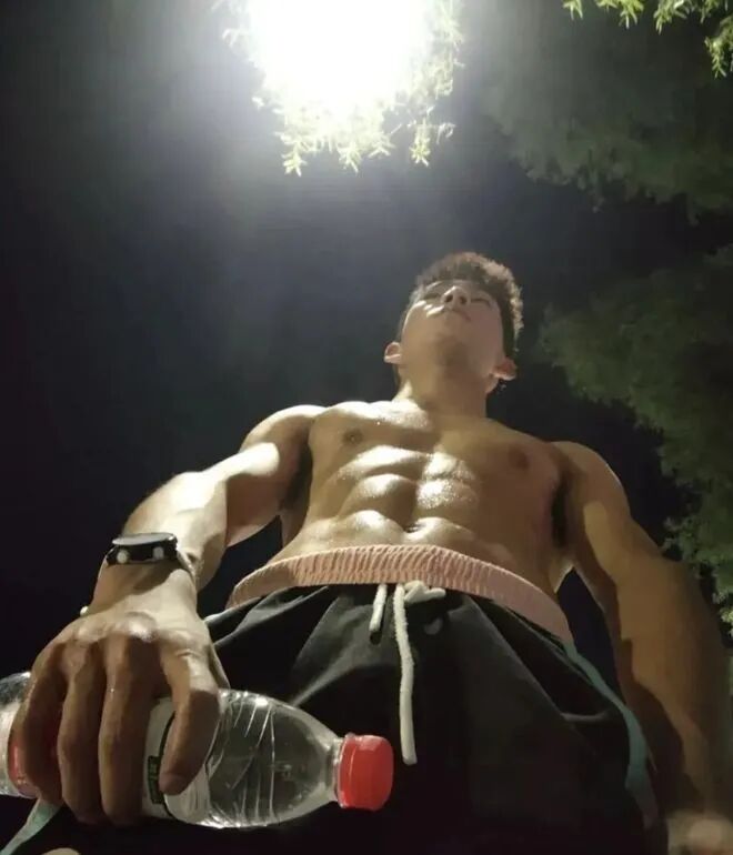 这位东北黑皮体育生,刚刚结束了一场激烈的篮球赛,汗水浸湿了他的腹肌,灯光下闪耀着健康的光泽。