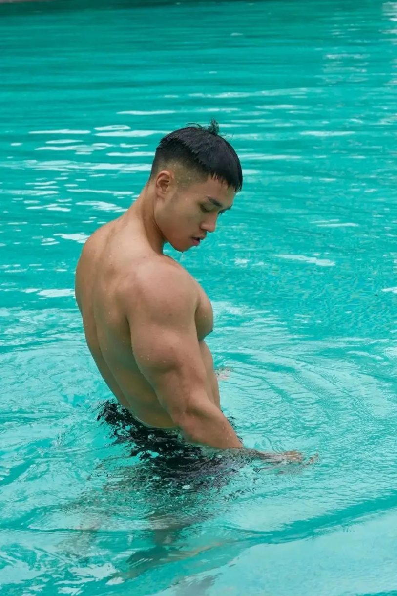 泳池中的水不仅滋润了壮男们的肌肤,更凸显了他们的身材。湿透的衣衫紧贴在身上,壮男们的魅力在此刻得到了无限放大。