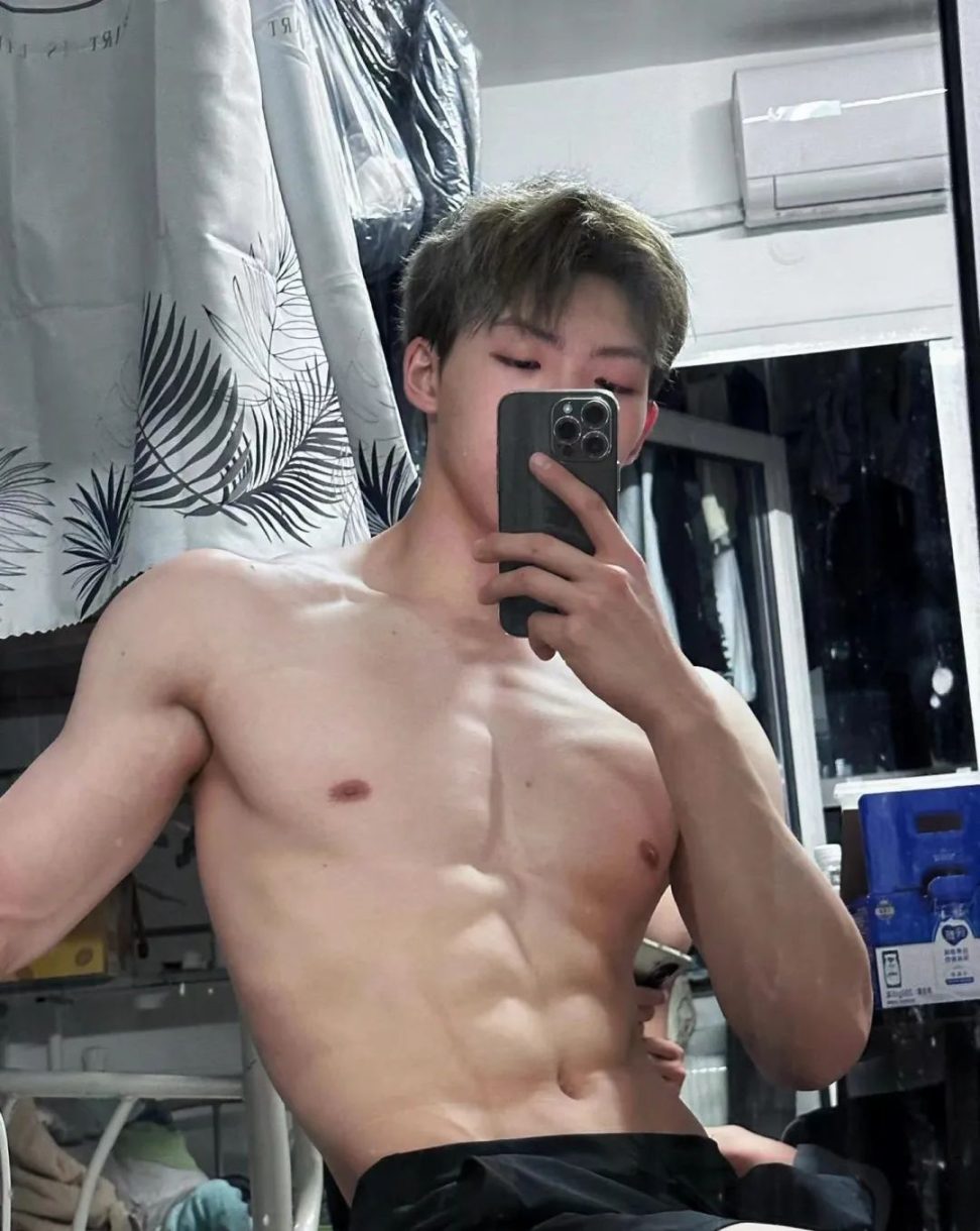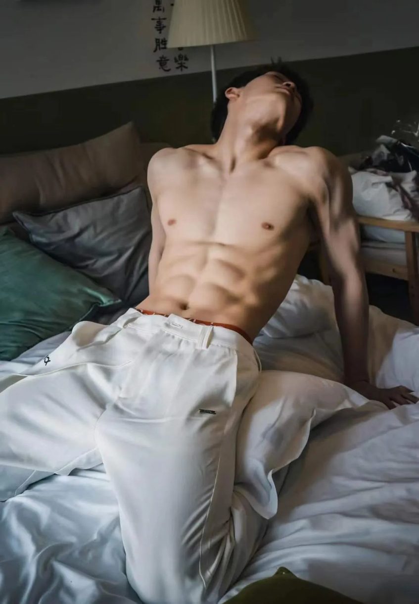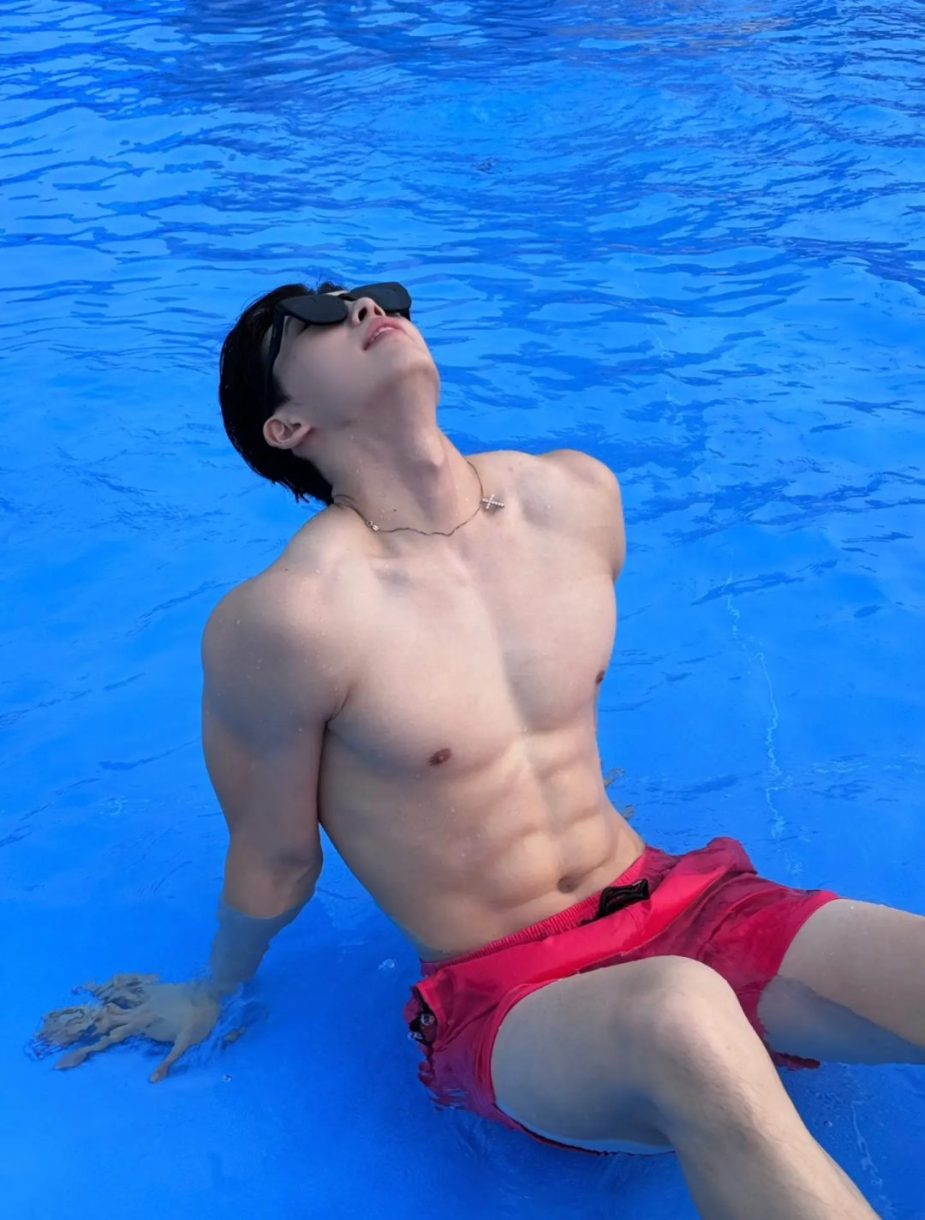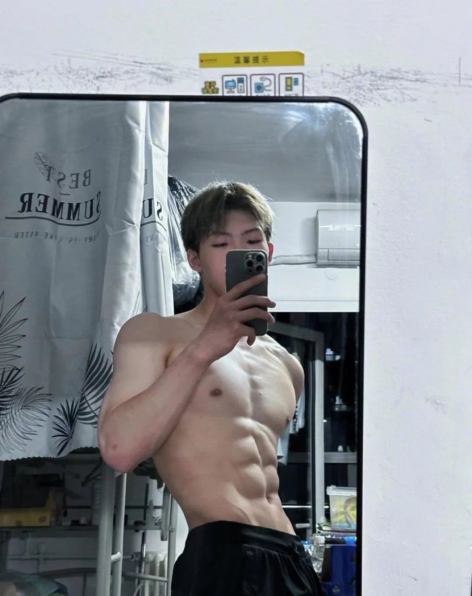 这个小哥哥185cm的高挑身材, 八块腹肌很明显。