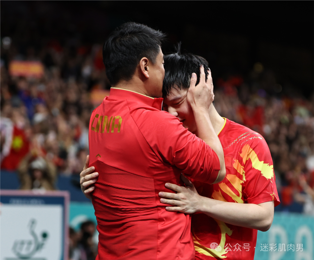 在北京时间8月4日晚,在巴黎奥运会乒乓球男单决赛中,中国选手樊振东以4-1,战胜瑞典选手莫雷高德夺得冠军,为中国乒乓球队实现奥运男单五连冠。大满贯!樊振东夺得男单冠军 王皓把樊振东高高抱起 师徒俩的梦想实现了,为他加油!好样的!