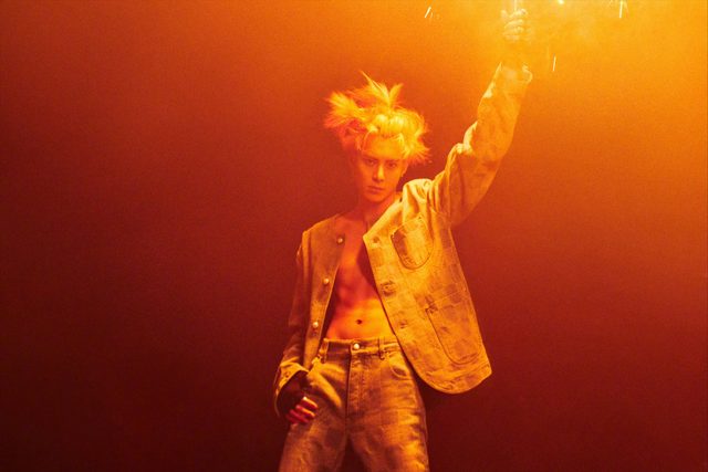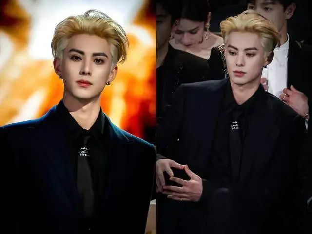 只见照片和视频里的王鹤棣,身着黑色无袖 T 恤,一头金发造型十分抢眼,一登场就霸气征服整个球场,就像是撕漫男走进了现实一般。