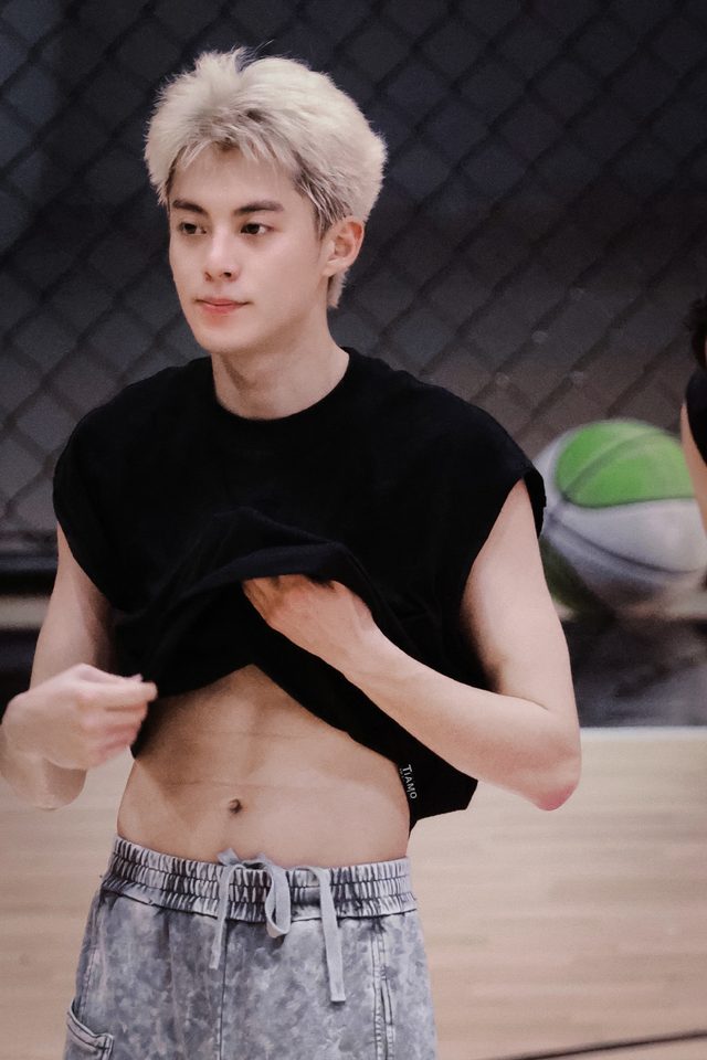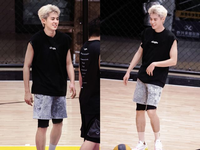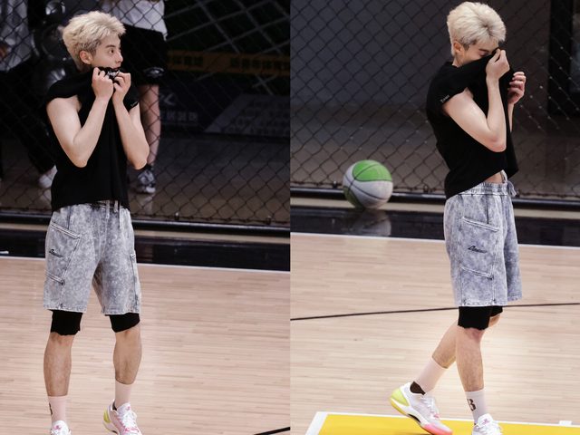 篮球运动本身就是体力活,需要在运球过程中大幅动作,所以难免会汗流浃背。 满头大汗的王鹤棣与普通群众也并无特殊之处,有汗就拿衣服来擦拭。