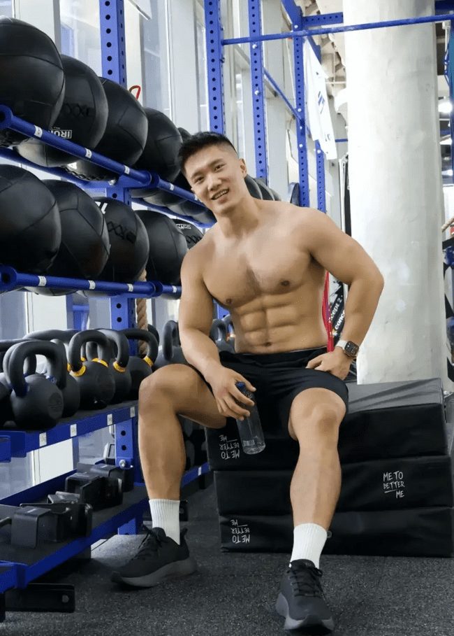 在健身房里这个男人正展示着他那经过精心雕琢的艺术品般的八块腹肌。汗水沿着肌肉的轮廓滑落,不是普通的汗水,而是散发着荷尔蒙气息的液体,让人心醉。他曾经是100米田径运动员,187cm,体重90kg,速度与力量的完美结合体。