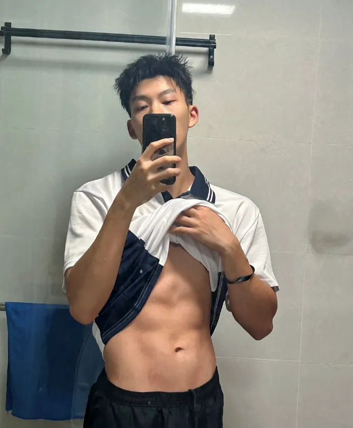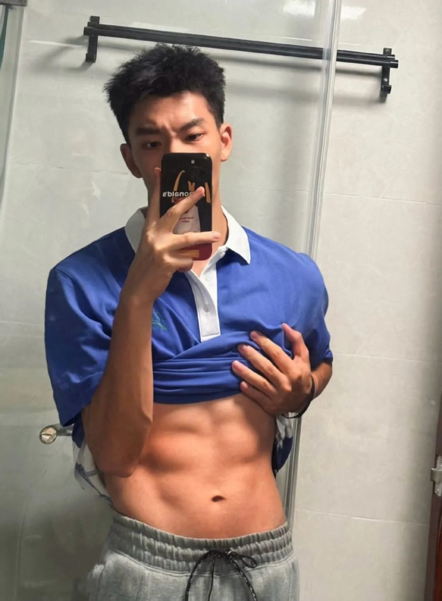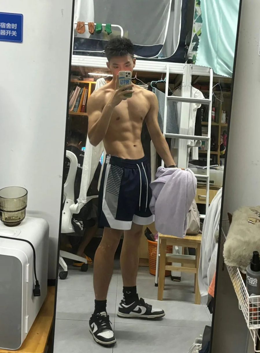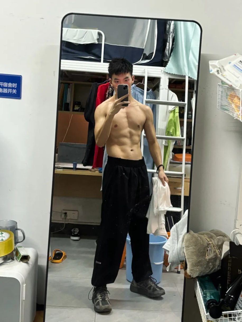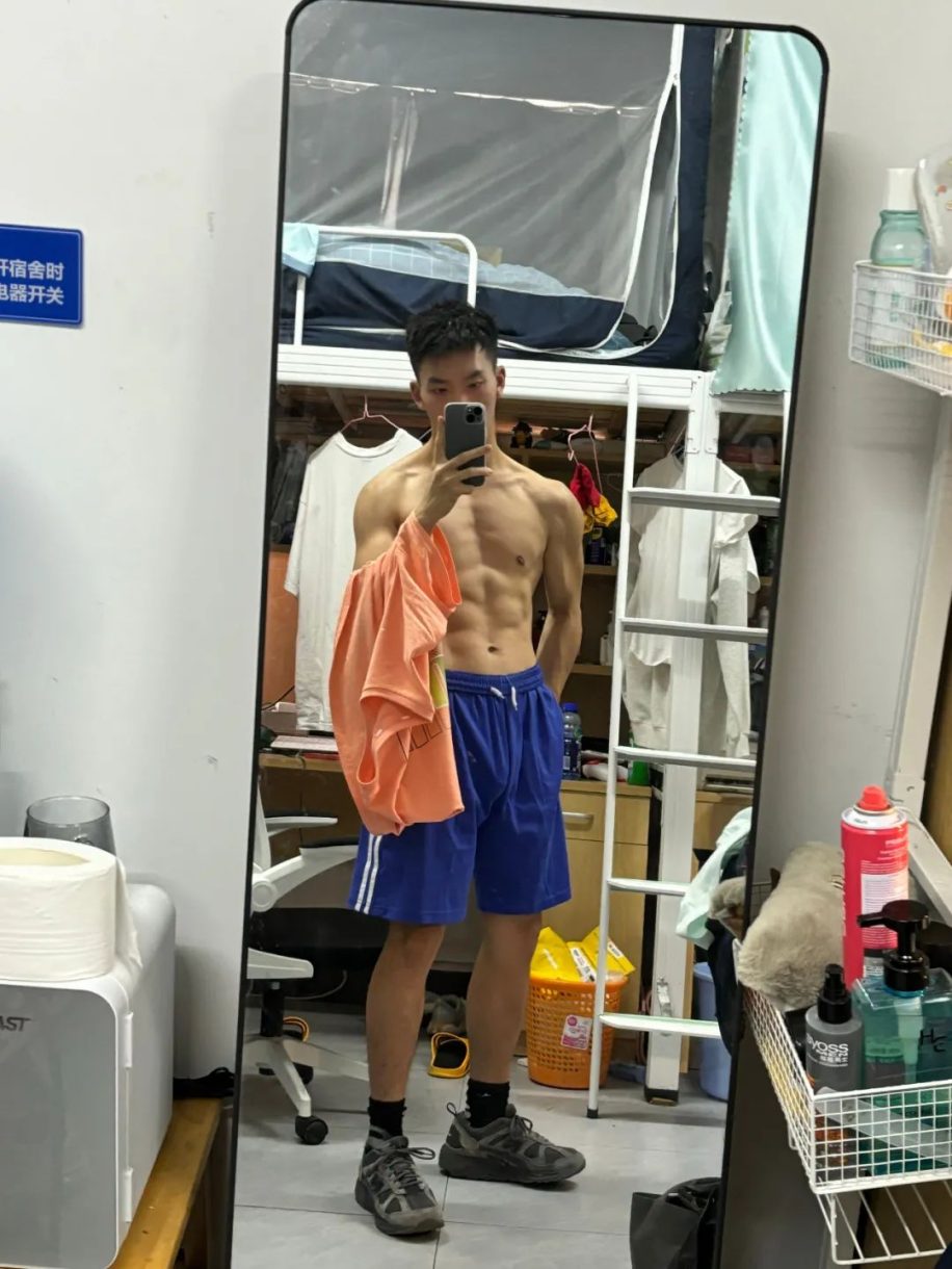 小哥哥来自广州体育学院的@H小狼,他经常在宿舍撩起腹肌一言不合自拍