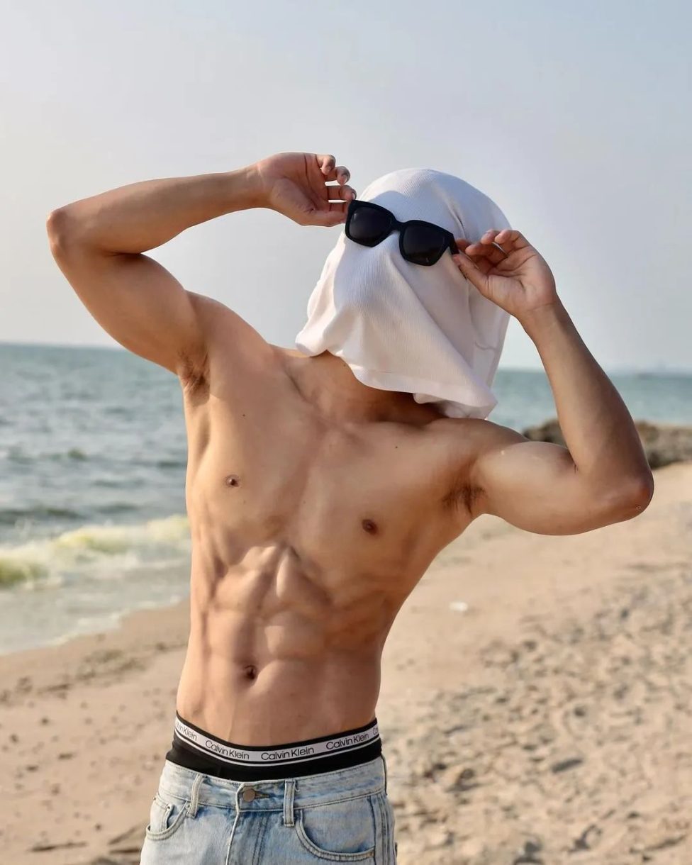 相较于青春期的他, 陈炳林的身材明显变得壮实, 不仅拥有两排轮廓分明的腹肌, 全身的肌肉群也全都被唤醒, 历经男大十八变, 终于成为了一个 “穿衣显瘦,脱衣有肉”的型男。