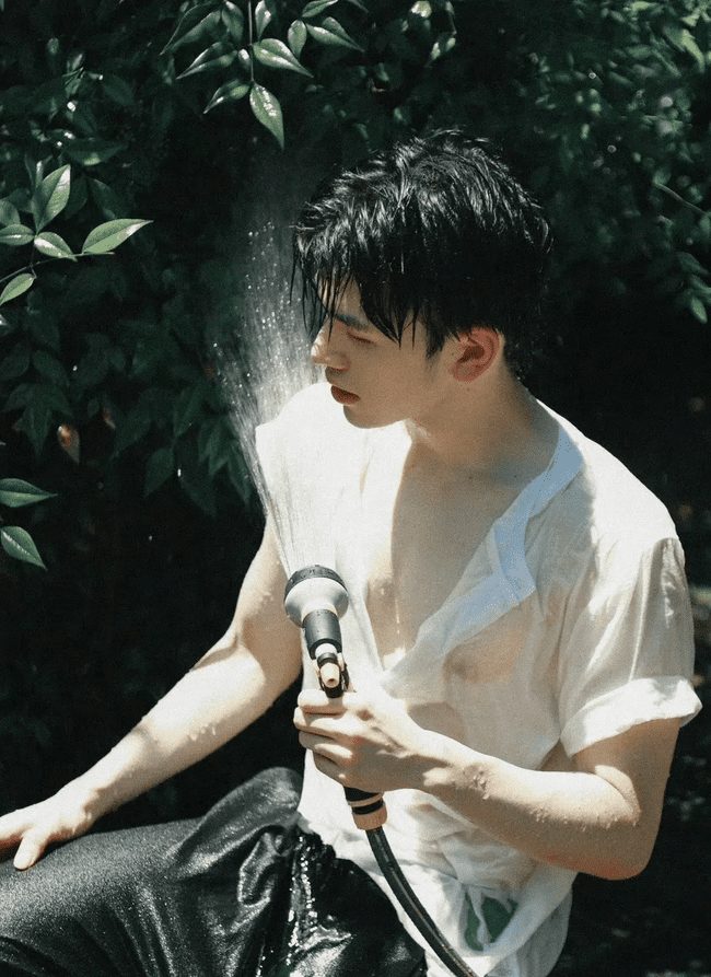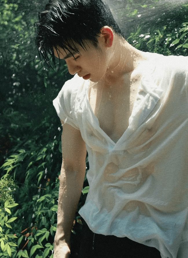 被打湿的衬衫,粘连在小哥哥白皙的肌肤上,胸膛之中,露出的一点粉嫩之色,都是满满的诱惑力,总是幻想着自己就是这个为他拍照的人。