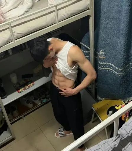 体育生在寝室撩起8块硬邦邦腹肌!!