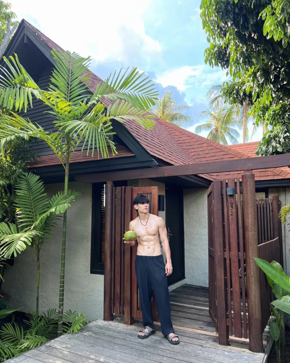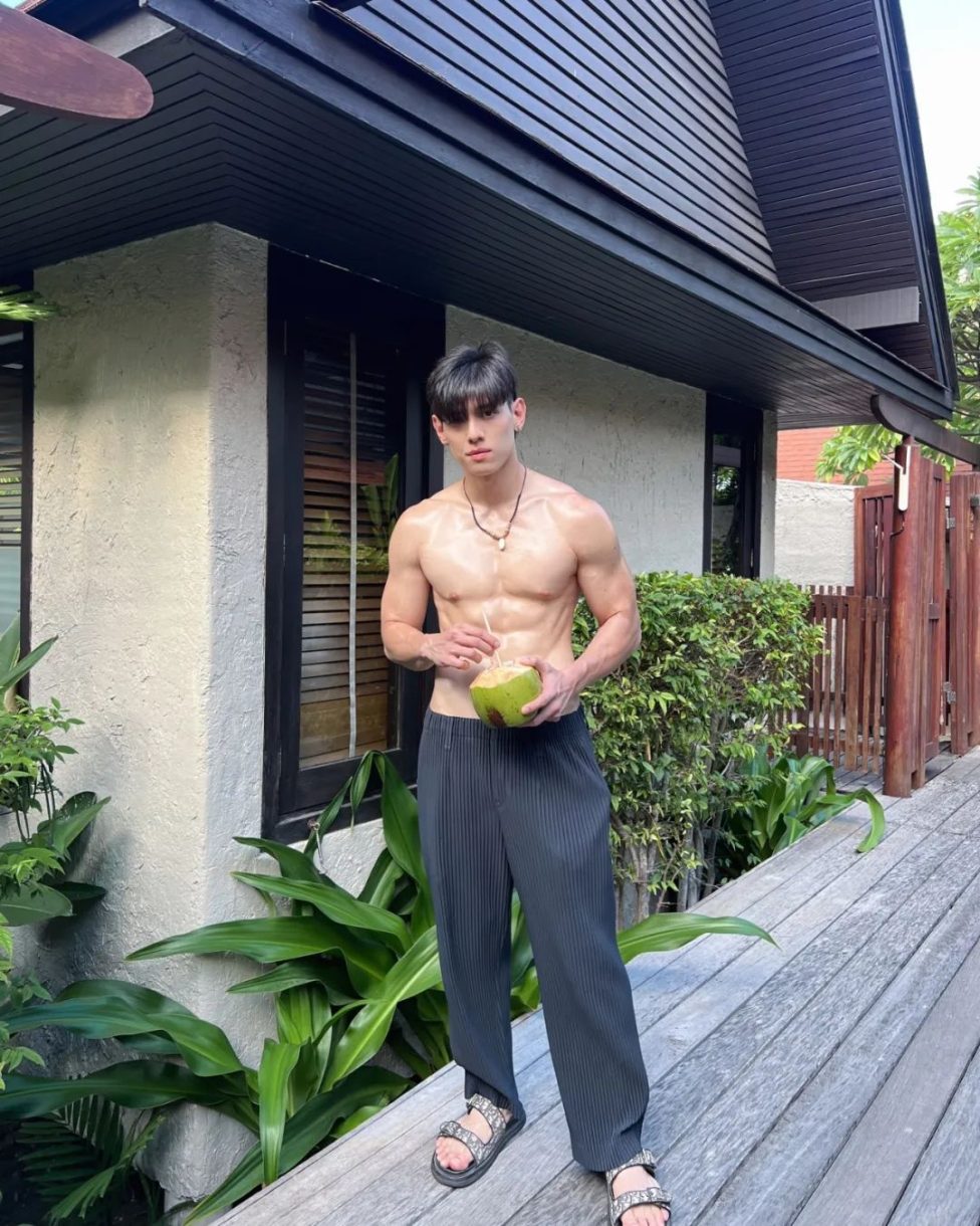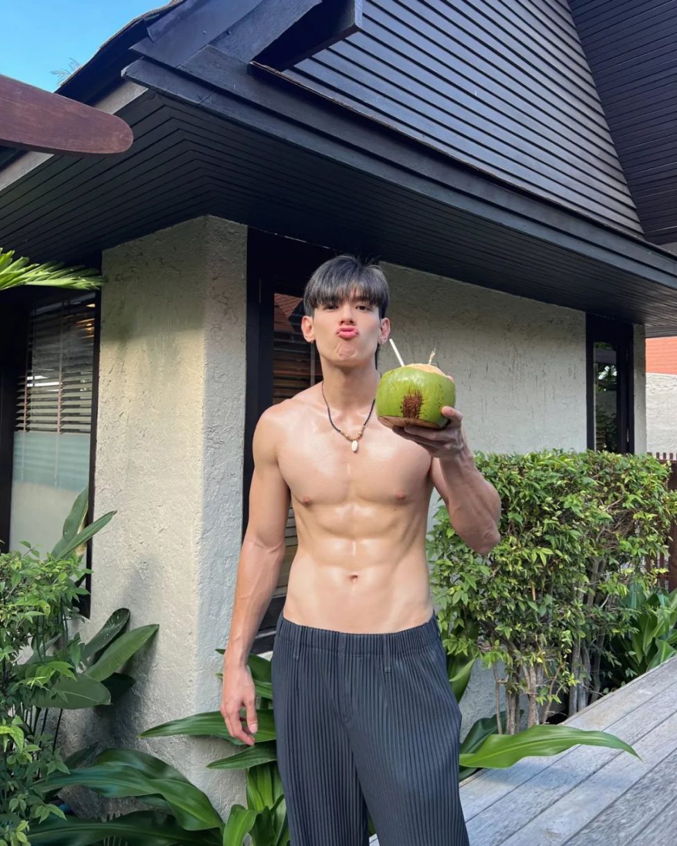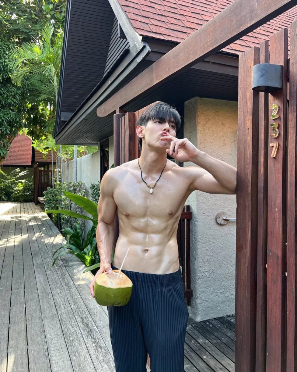 点击上方"蓝字" 巨巨巨好看~ 泰国男演员Gap也太反差萌了吧, 喝个椰子水都这么可爱, 又是露牙咬吸管, 又是嘟嘴要亲亲的。