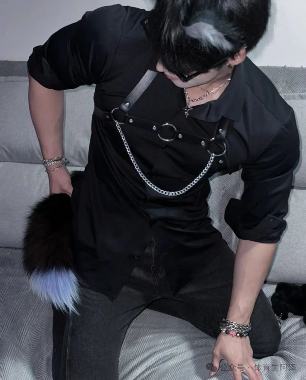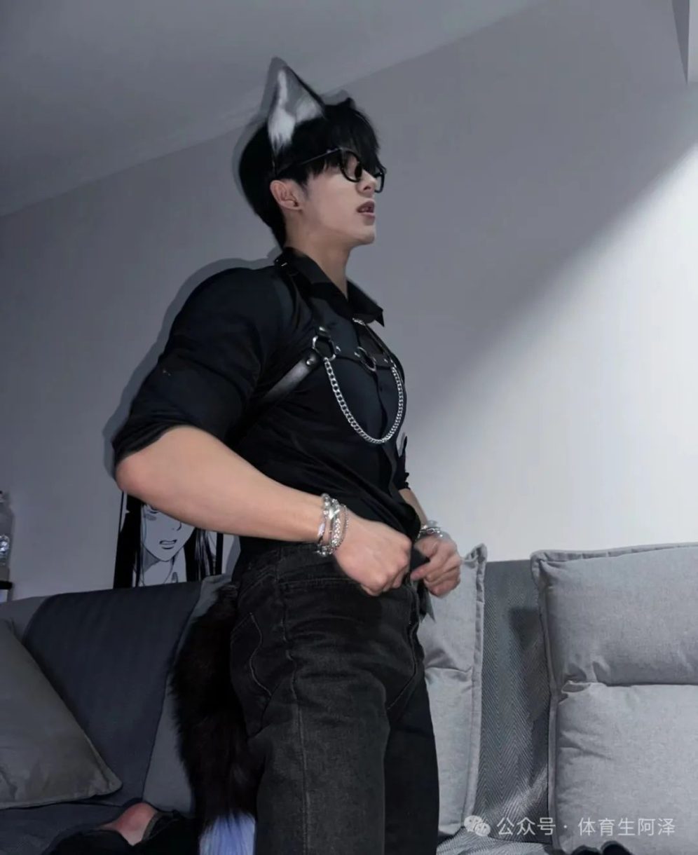 接下来是男仆装扮,这装扮换上好像有buff加成一样,魅力一下就提升了上来,有种让他跪躺在床上,揪他尾巴的冲动啊哈哈哈哈。都说狐狸是最迷人的动物,谁说男狐不是狐呢?这样的男狐哪里找哈哈哈哈。这手上的青筋,加上浑身带的套装,阿泽 表示可以翻身做主人了啊哈哈哈哈哈。