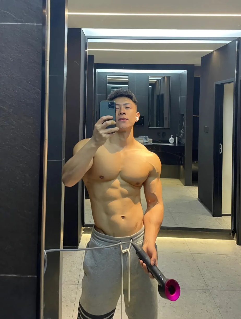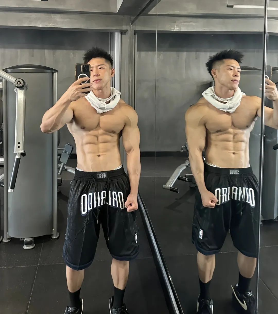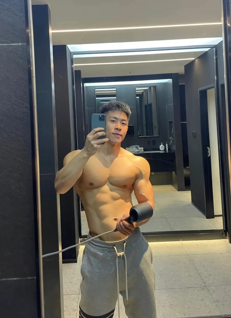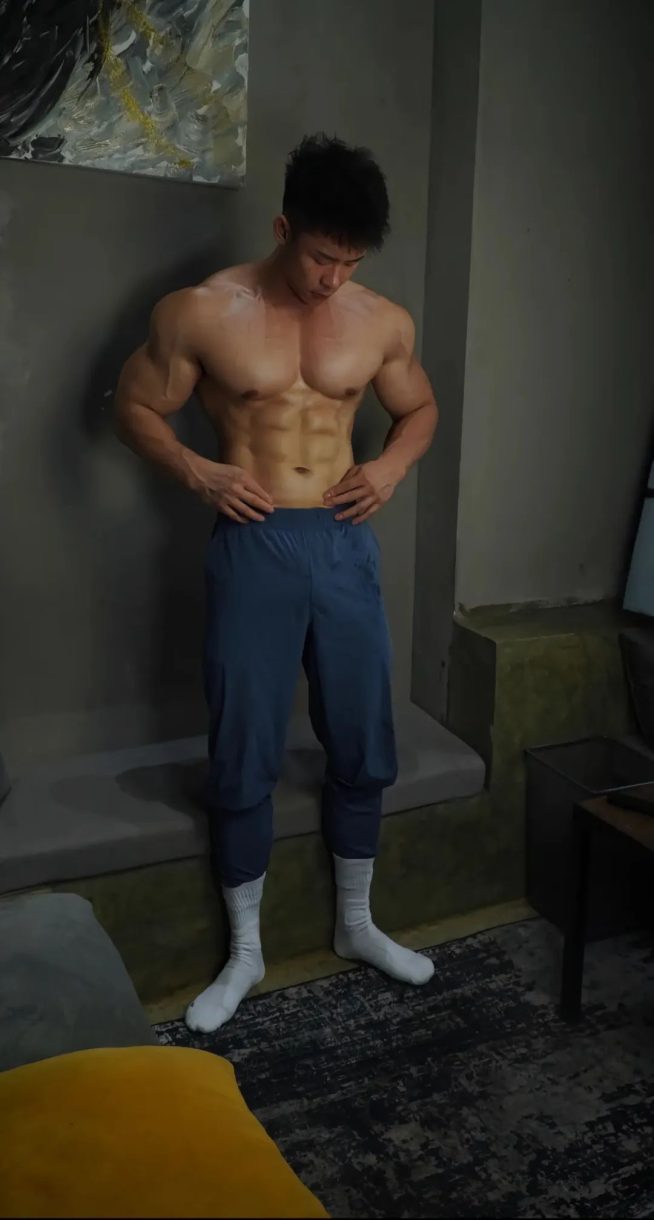 上周有看过他的直播,中途他忘记开美颜了,然后皮肤看上去比我二伯的脸还凹凸不平、坑坑洼洼…,不过身材的确是货真价实的,实打实的肌肉。