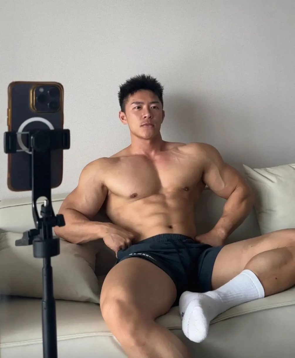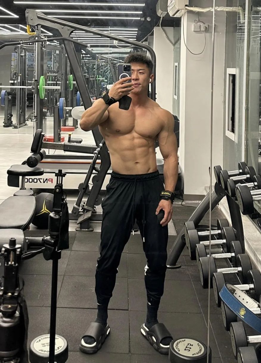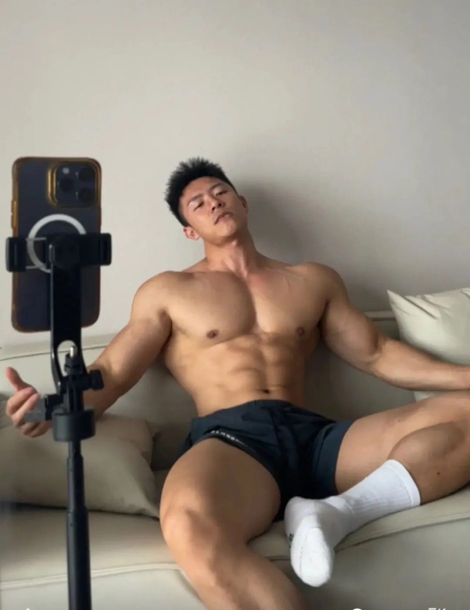 上周有看过他的直播,中途他忘记开美颜了,然后皮肤看上去比我二伯的脸还凹凸不平、坑坑洼洼…,不过身材的确是货真价实的,实打实的肌肉。