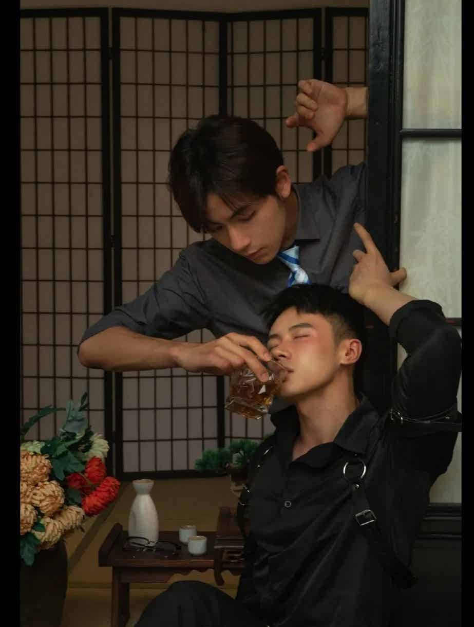 小哥哥的颜值超高,即使在醉意朦胧中,也散发着独特的魅力。他的脸庞轮廓分明,眼神深邃,仿佛藏着无尽的故事。