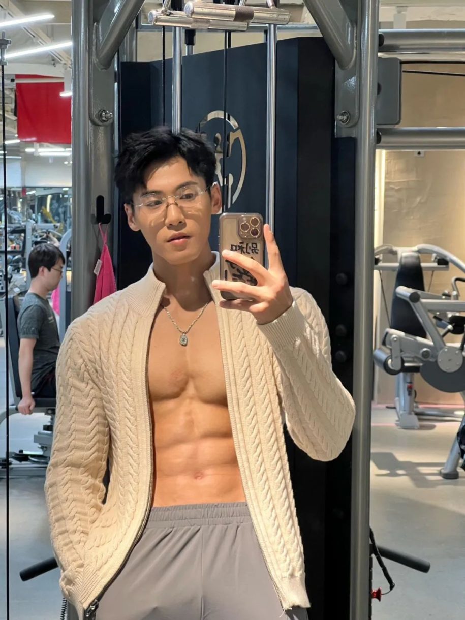 早在2021年他就开始玩抖音了,那时候他的身材还没有像现在这么大只,也没有倒三角的形状,看上去像是刚刚大学毕业,才进入男模行业似的。