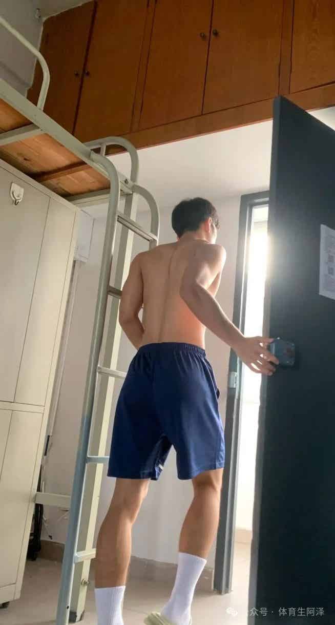 还有这个开门的动作,真的好诱惑啊,正好光透进来,洒在他的肩膀上。肩膀上的肌肉被照的好有力量感。有种纯洁中加点圣洁不可侵犯的感觉哈哈哈。这个屁股虽然没有穿紧身的短裤。但是一看就是知道平时锻炼的时候臀部锻炼的很完美。因为体育生平时不管是跑步还是训练都是整个身体一起运动的。所以臀部和整个身体的肌肉都很紧实哈哈哈哈。这样看起来臀部翘翘的哈哈哈。