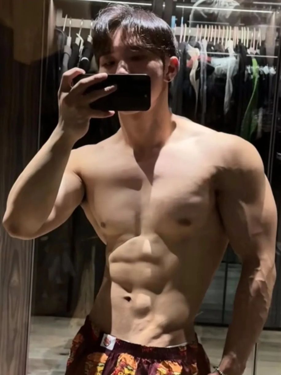 这个小哥哥185cm的高挑身材,六块腹肌很明显。