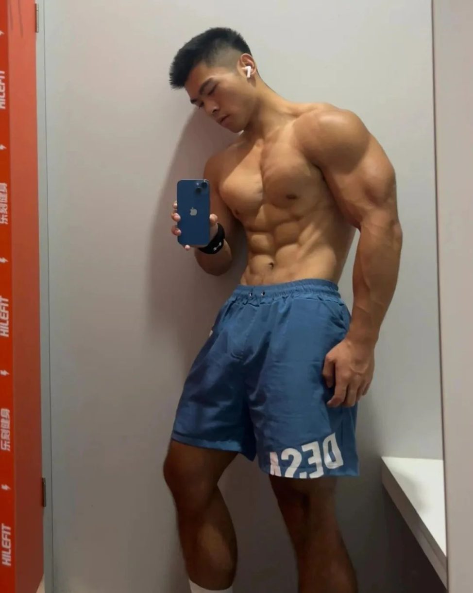 他围度大,体脂低,体毛多,还有那令人羡慕的八块腹肌,轮廓分明。