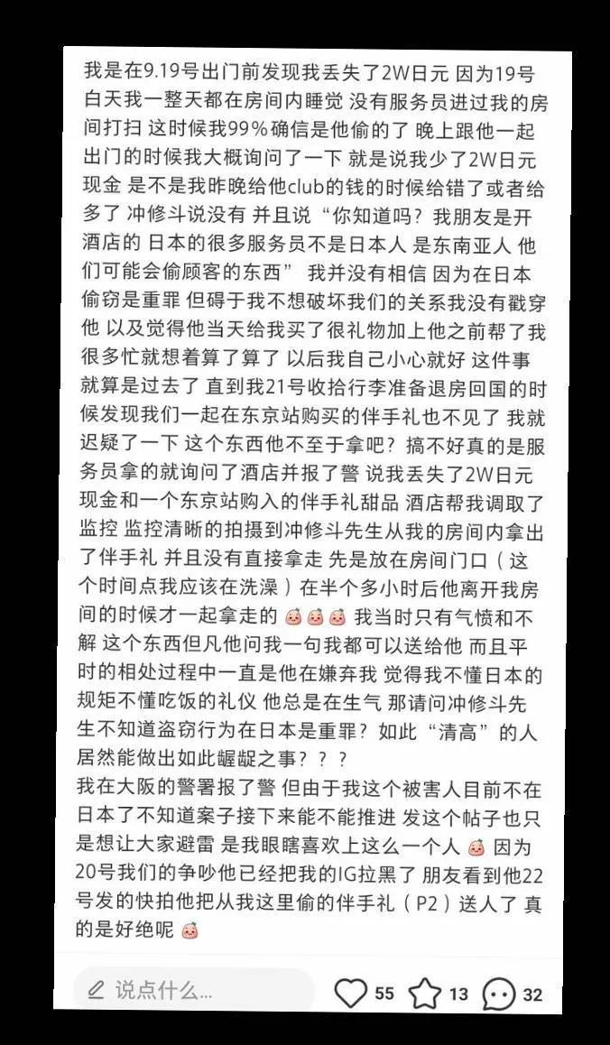 当你发现与自己同游的伙伴竟然涉嫌偷窃,会是怎样的震惊?近日,来自小红书网友 :Charles 爆料出这样的事情竟是日本圈内知名男优冲修斗!