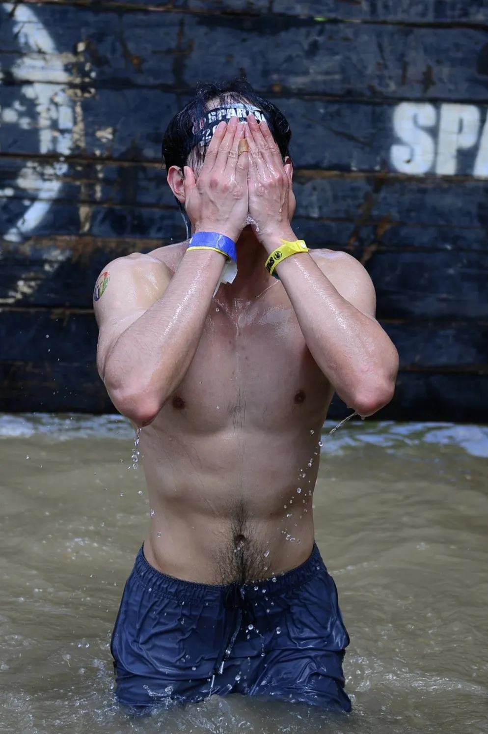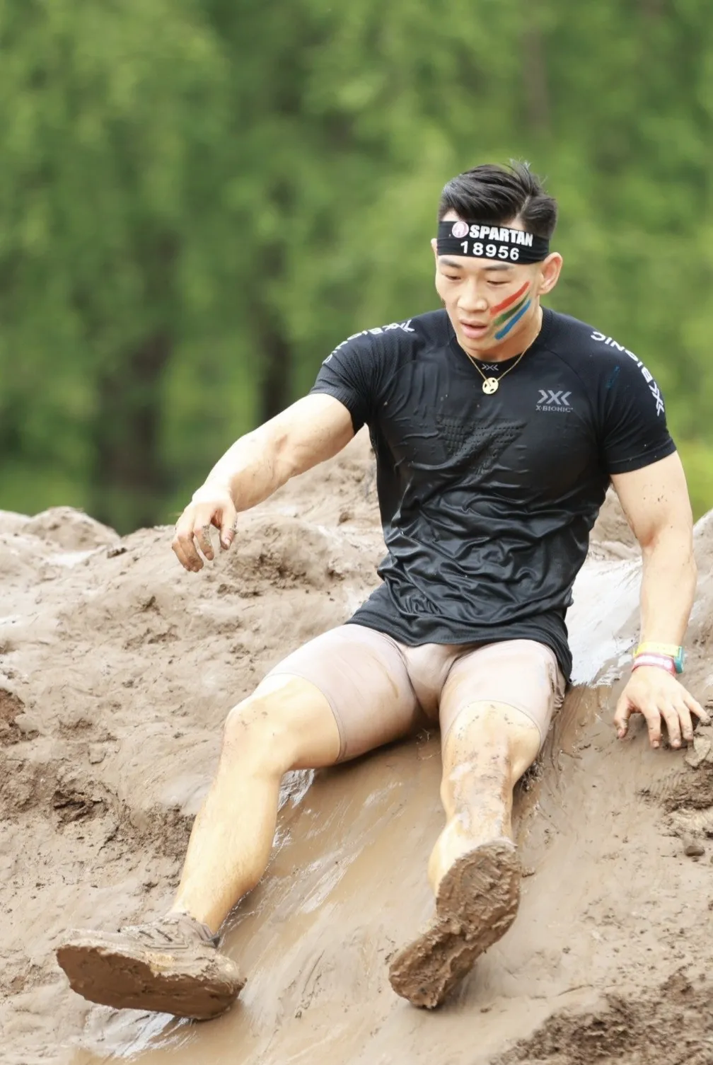 参加斯巴达的运动男湿湿透,穿这么紧身的裤子吗?