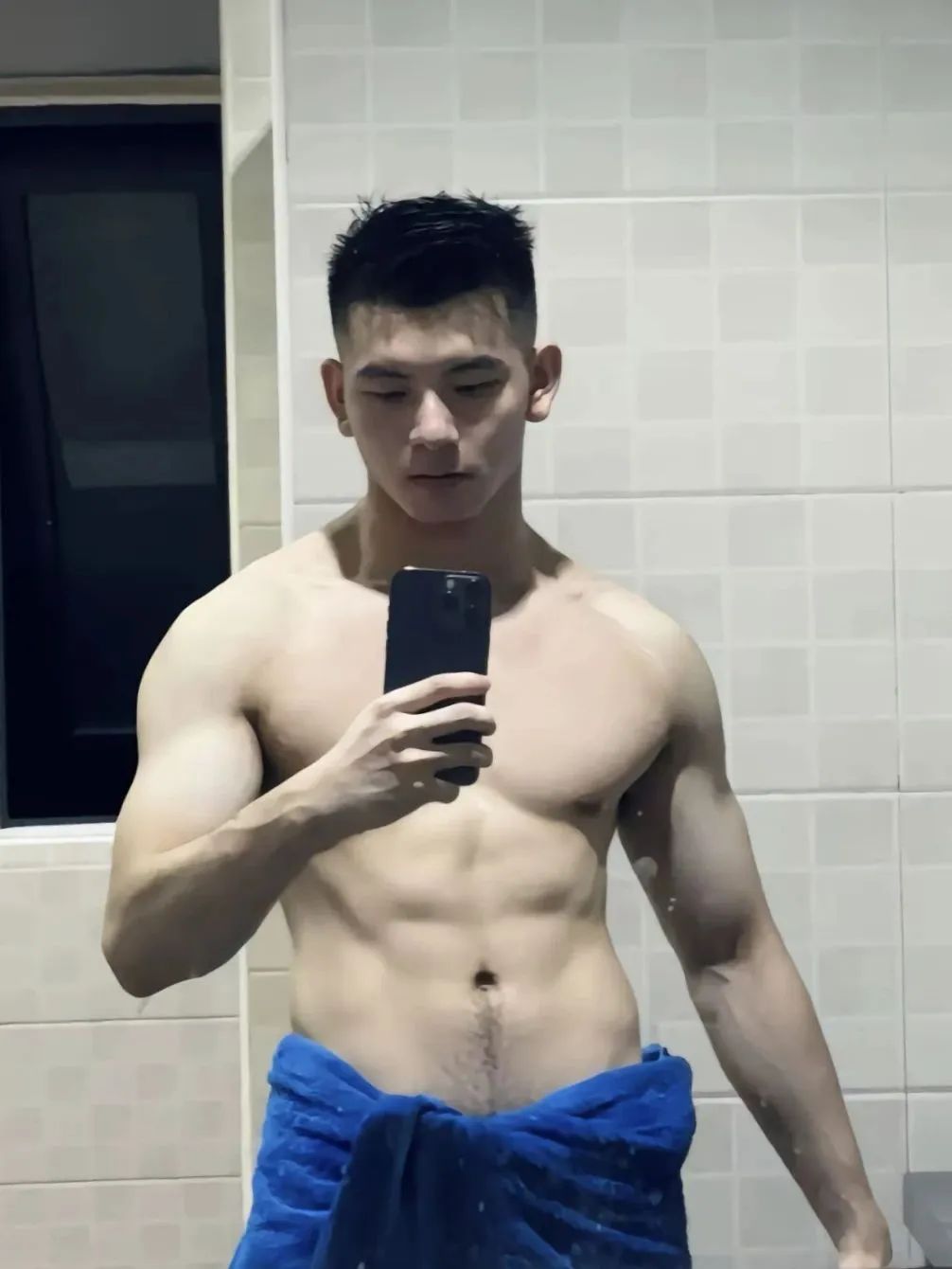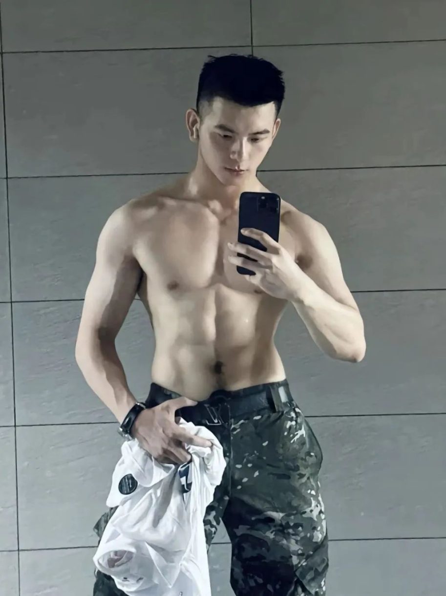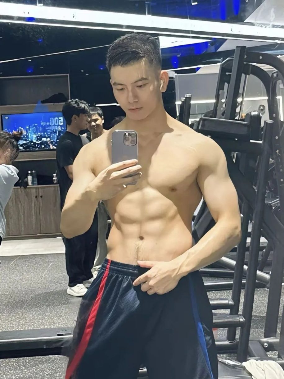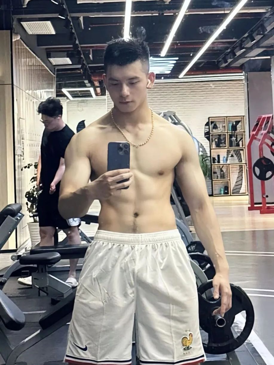 他的皮肤白嫩,肌肉线条更是完美,一看就是经常撸铁的成果。配上性感的腿毛,妥妥的理想男友哈哈哈