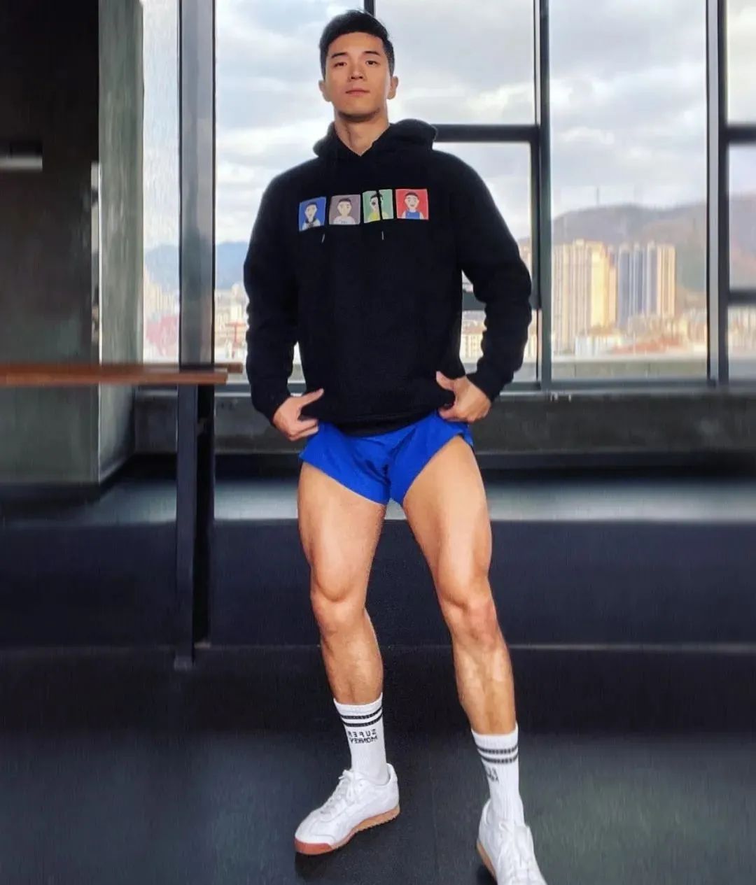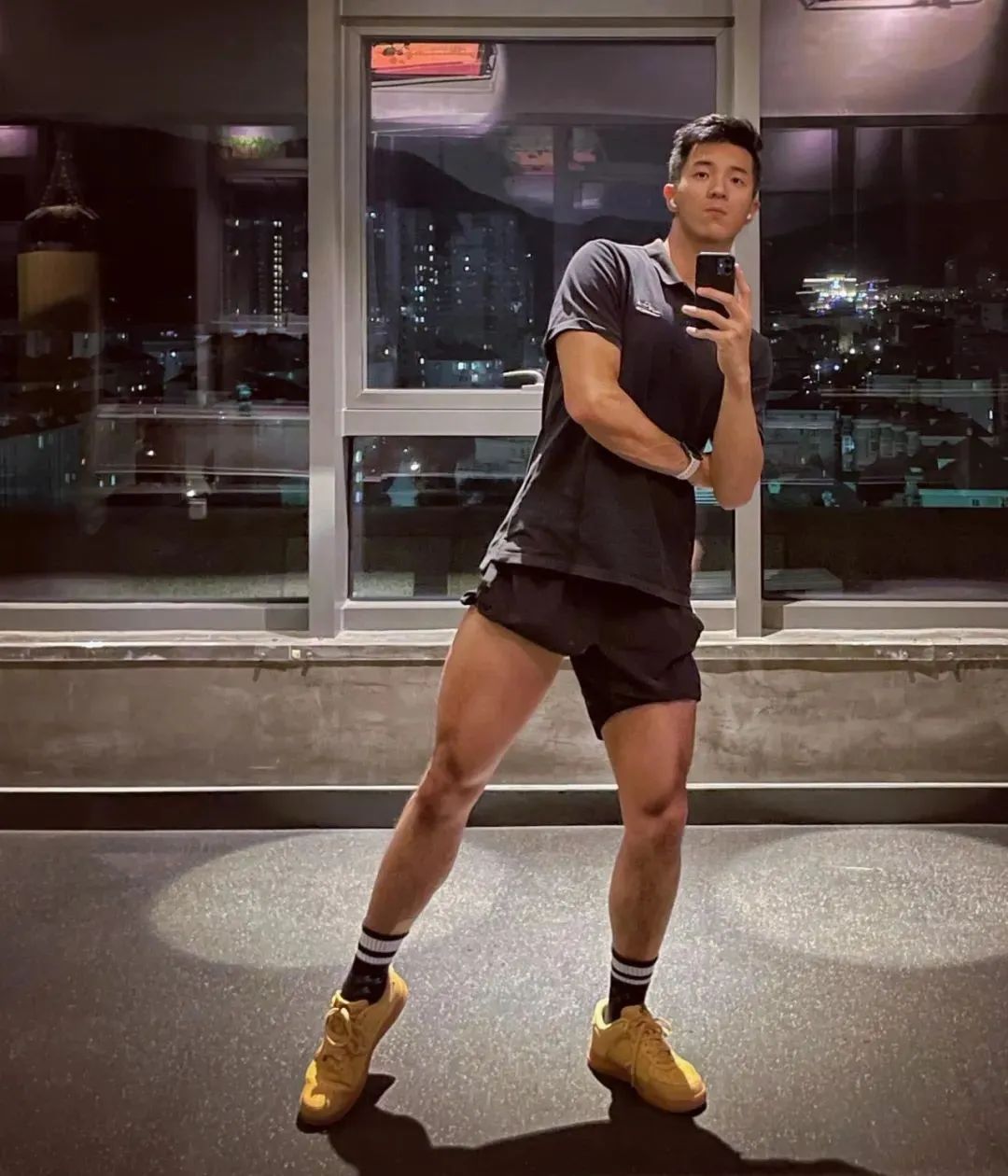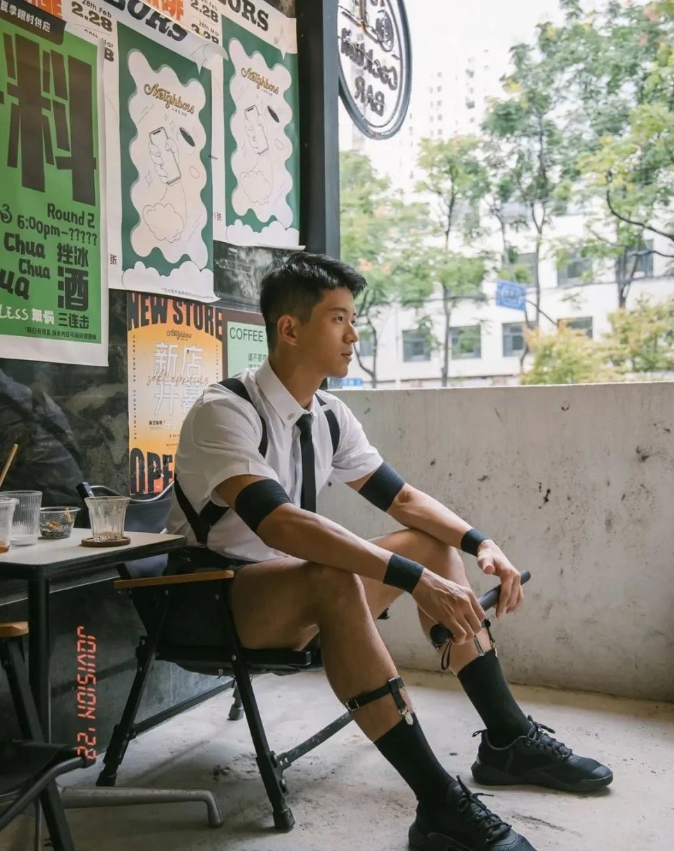 然而,纪教练最让人难以忘怀的,当属他那独特而又充满魅力的着装风格。那身西装短裤搭配黑色吊袜夹的装扮,无疑是一种视觉上的强烈冲击。黑色吊袜,这种看似在日常中并不常见于男性着装的元素,在纪教练的身上却散发出别样的魅力。它不仅仅是一种服饰的搭配,更像是一种对个性和时尚的大胆宣言。吊袜紧紧地贴合在他那大长腿上,凸显出腿部肌肉的线条,那是他长期健身成果的自然展现。而西装短裤则恰到好处地中和了吊袜可能带来的过度性感,增添了一份精致与干练。