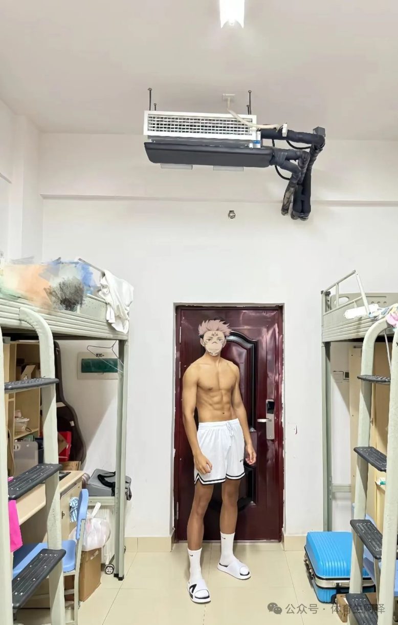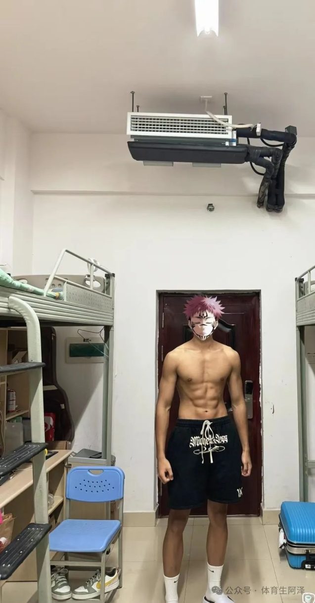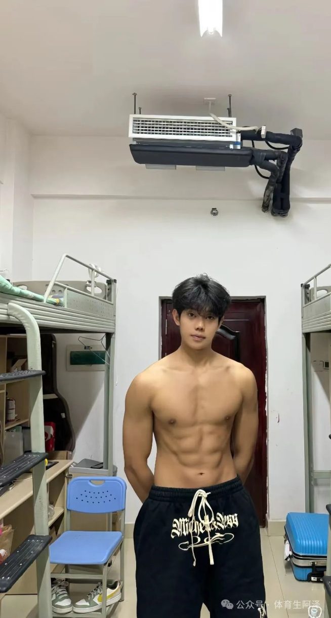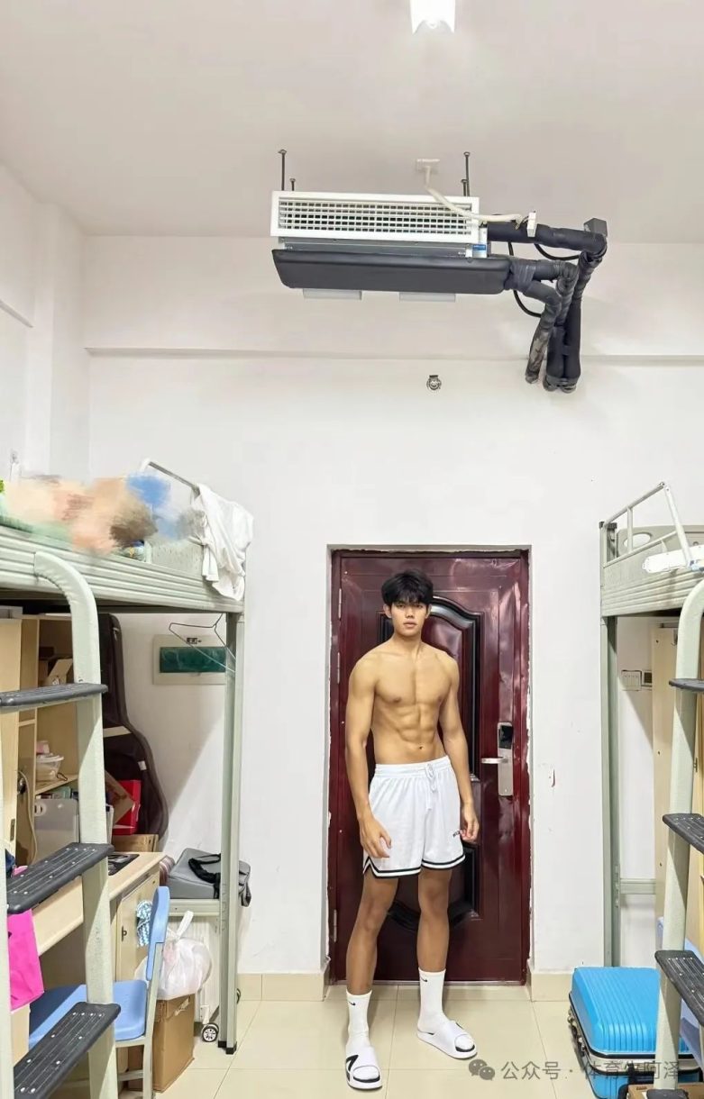 第一张真的是阿泽比较满意的,都说男生的颜值豆芽靠想象力,虽然带着特效没有露出脸,但是阿泽表示不用露脸啊哈哈哈哈。就这样挺好,虽然是体育生但是阿泽表示并没有想象中的宿舍那么乱,这个还是挺加分的。还有就是第一眼看见男主角的时候就自动忽略背景了哈哈哈哈。这个身高非常的亮眼。更别提更加让人喜欢的腹肌了。八块腹肌一块不多一块不少哈哈哈。真的绝绝子,好像搓衣板一样/就是阿泽表示枕在上面会有点搁人哈哈哈哈哈。