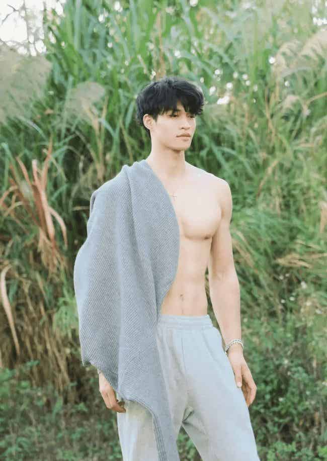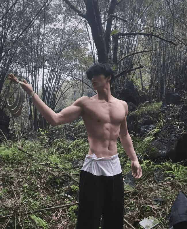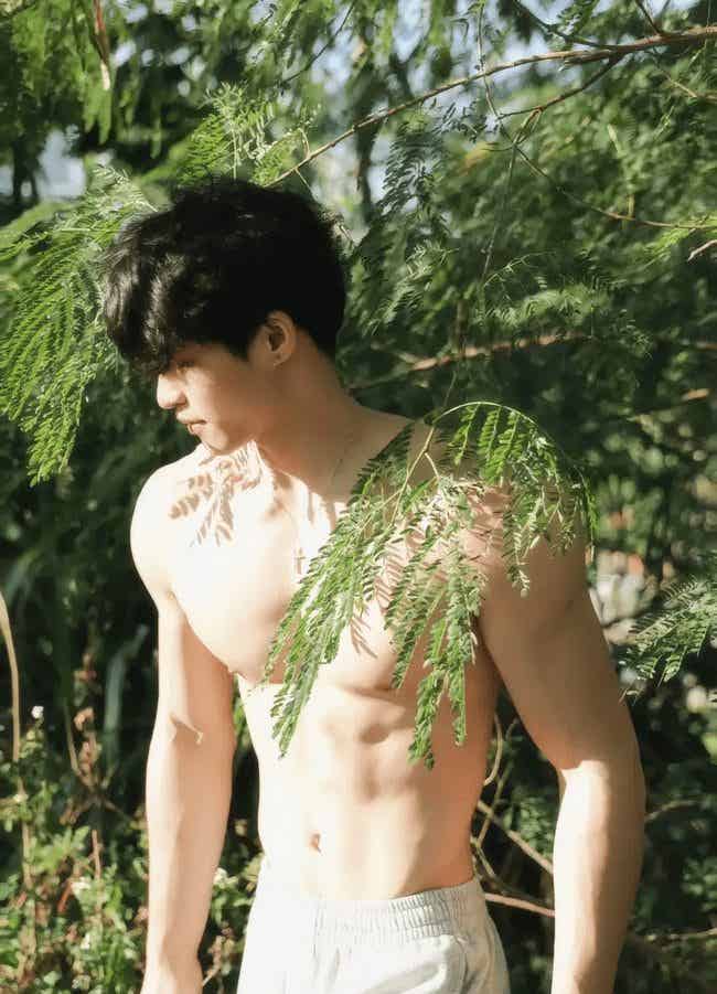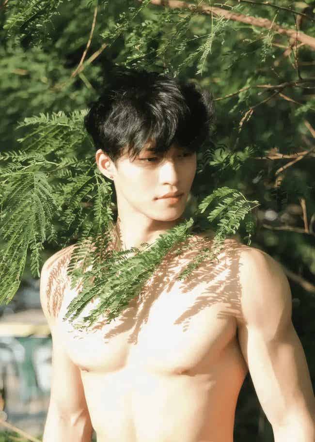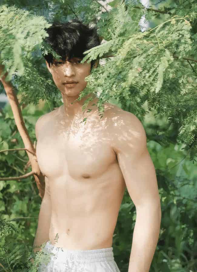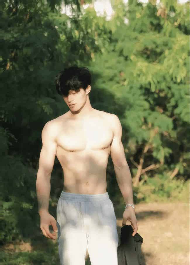 这是冷白皮吗?被阳光照射下,这肌肤白得泛光,光芒四射,白净性感的肌肤,完美无瑕的肌肉线条,这个清秀俊逸的少年,实在是上天的宠儿,太帅太性感了。