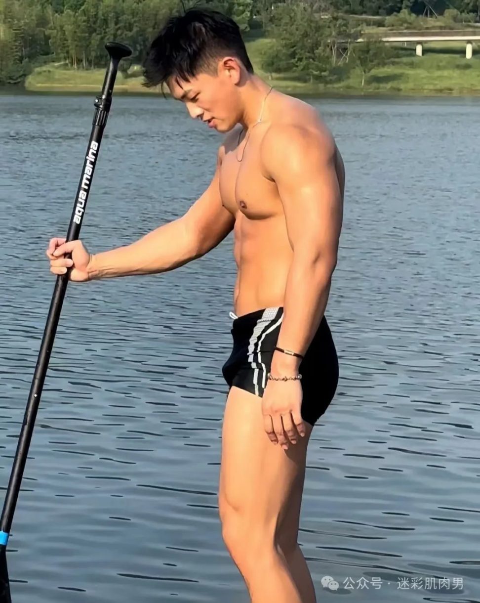 穿泳裤湿透皮划艇运动男IG新照黝黑大长腿,耐力强!