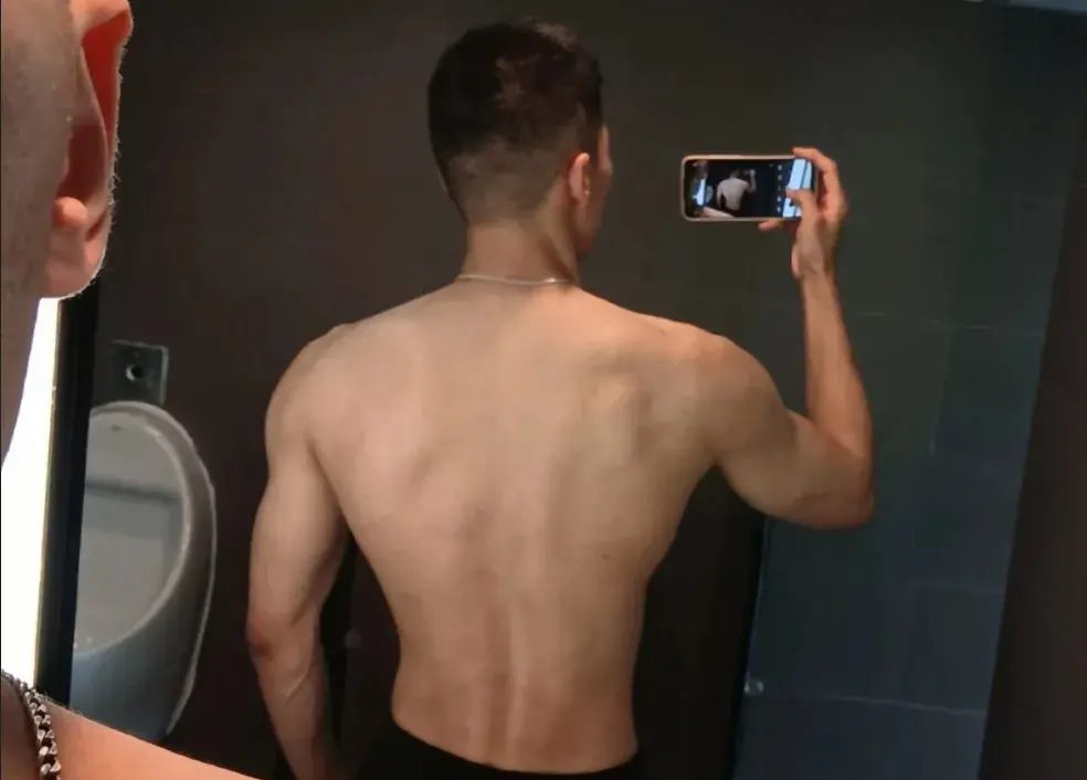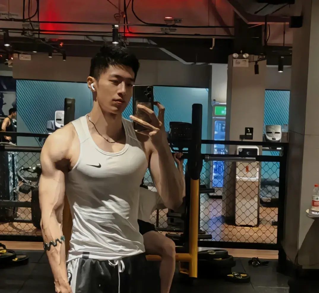 穿上老头背心的小哥哥,比他脱下上衣训练时,更具有魅力,可以清晰的感觉到他身上的肌肉线条,宽肩窄腰,人鱼线,还有饱满的胸肌,厚实又大又圆,强健的麒麟臂上,都是根根暴起的青筋,全是男人的荷尔蒙血脉的偾张。