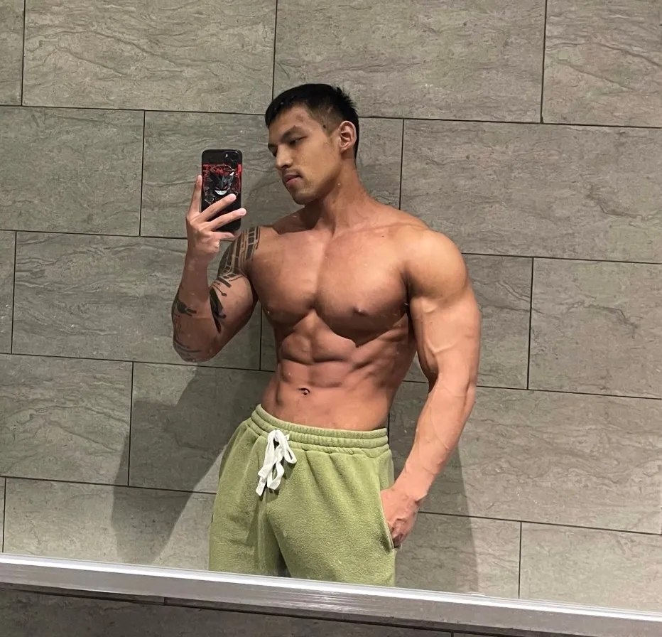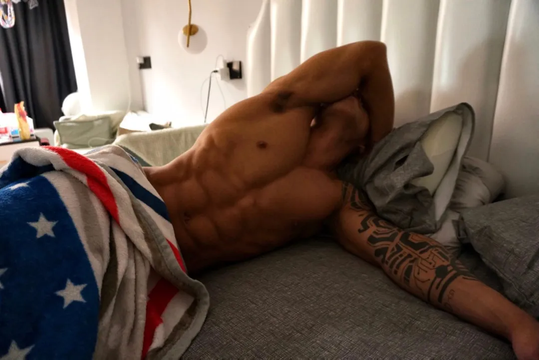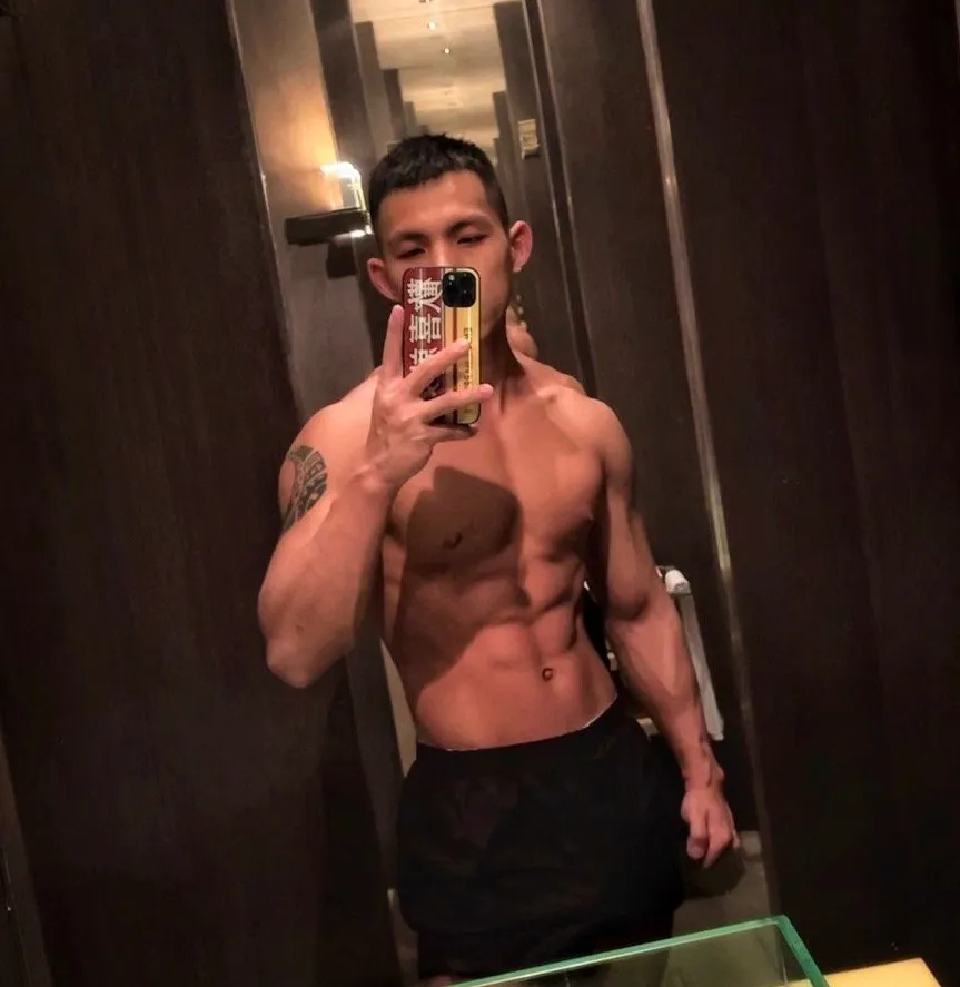 上海肌肉网红——@饭桶九。这位推特上拥有20万粉丝的型男!