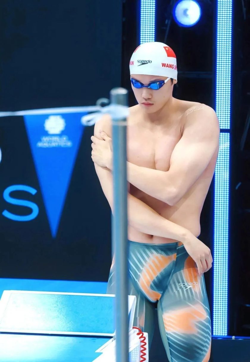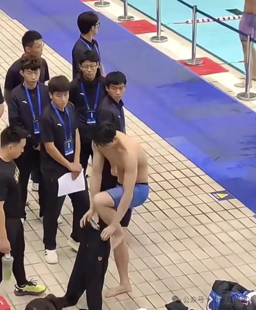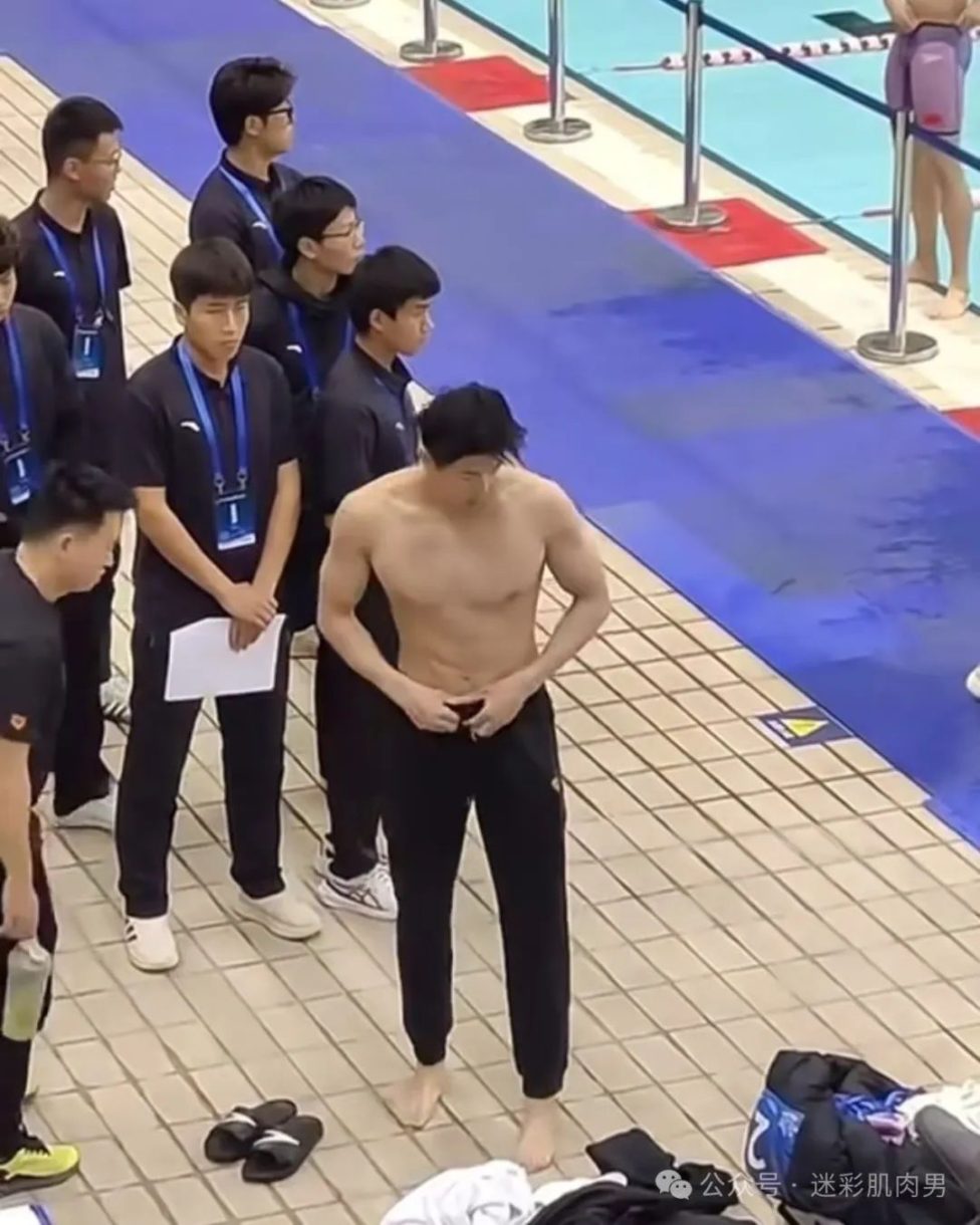 192CM汪顺比赛穿紧身泳裤照刷屏实力凸出,被摸胸了?
