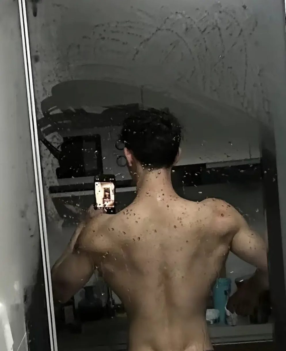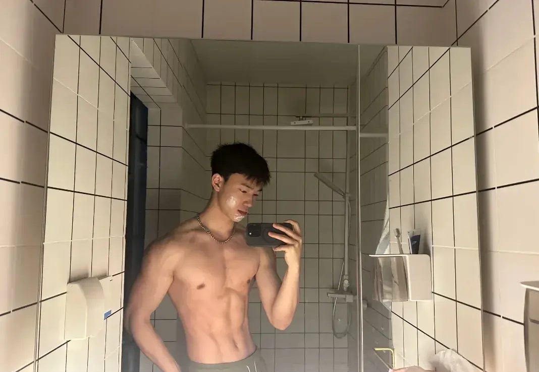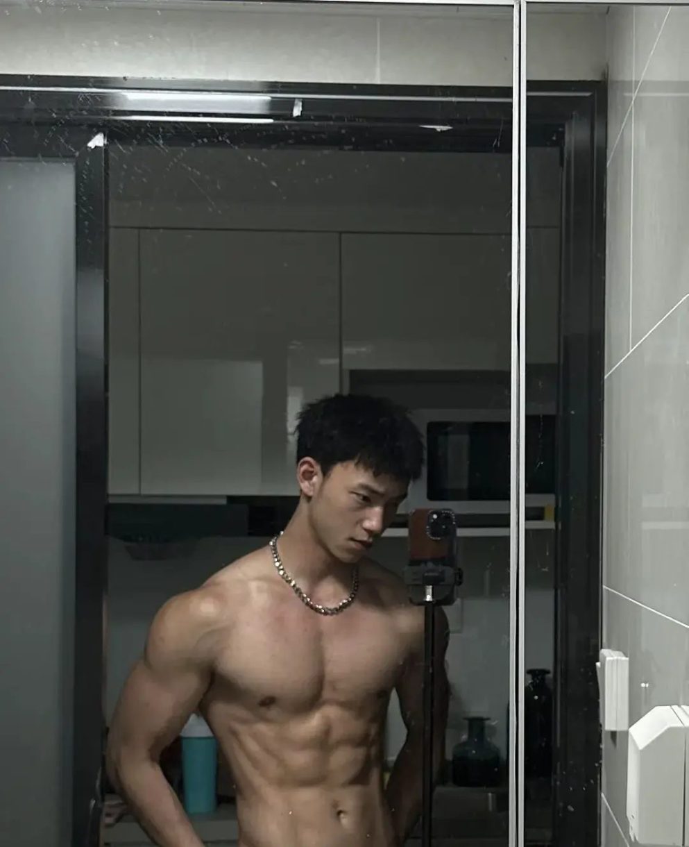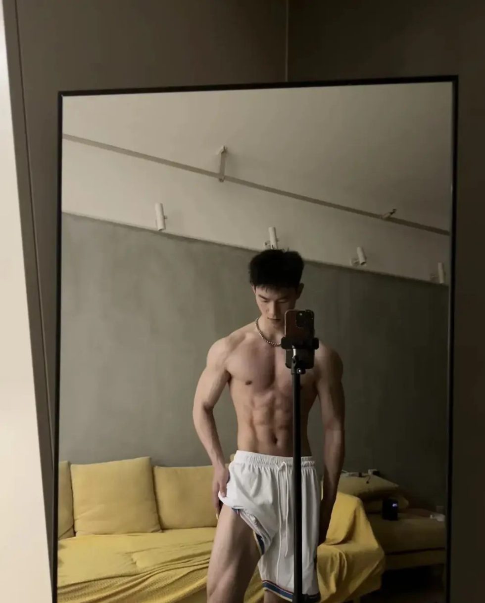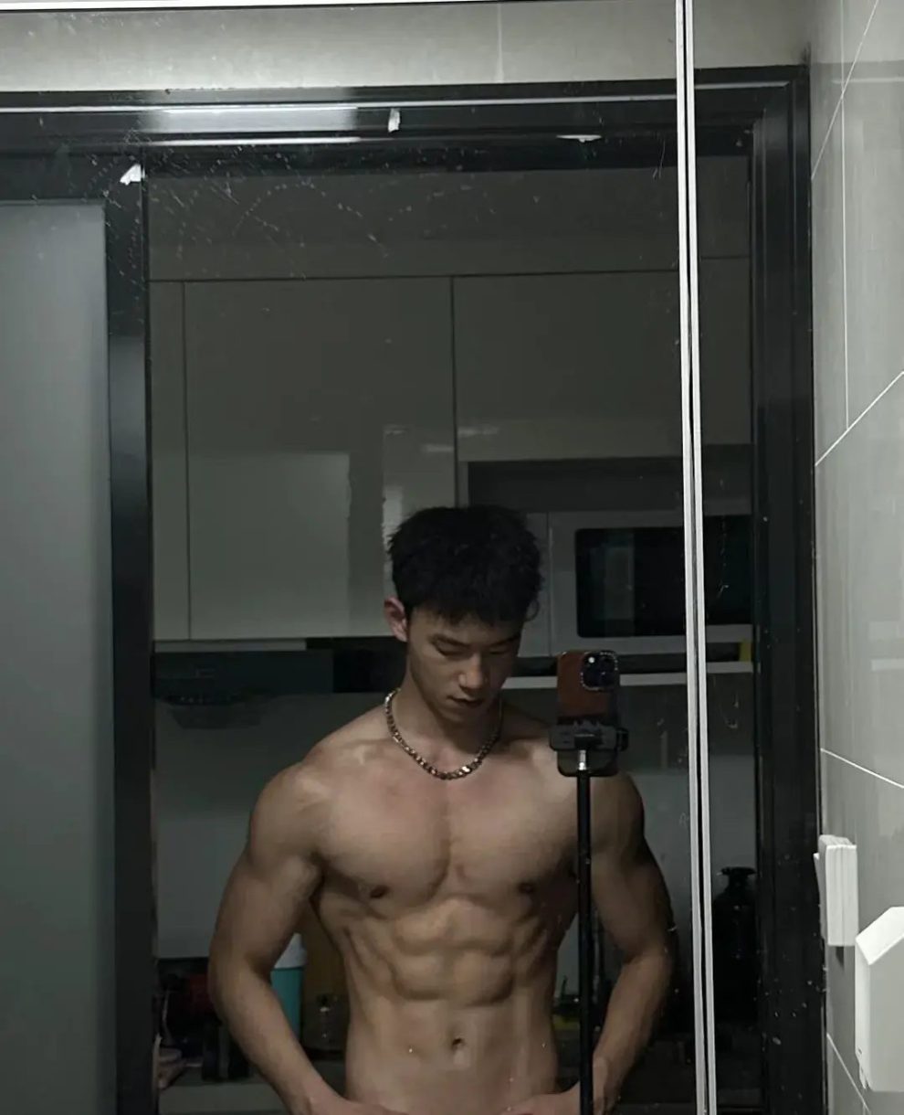 小哥哥家里面的这块镜子挺不错的,洗完澡就可以直接对镜拍一下他性感的身材了,每天的健身练习,不就是为了拍照吗?所以这面镜子是真的刚刚好。