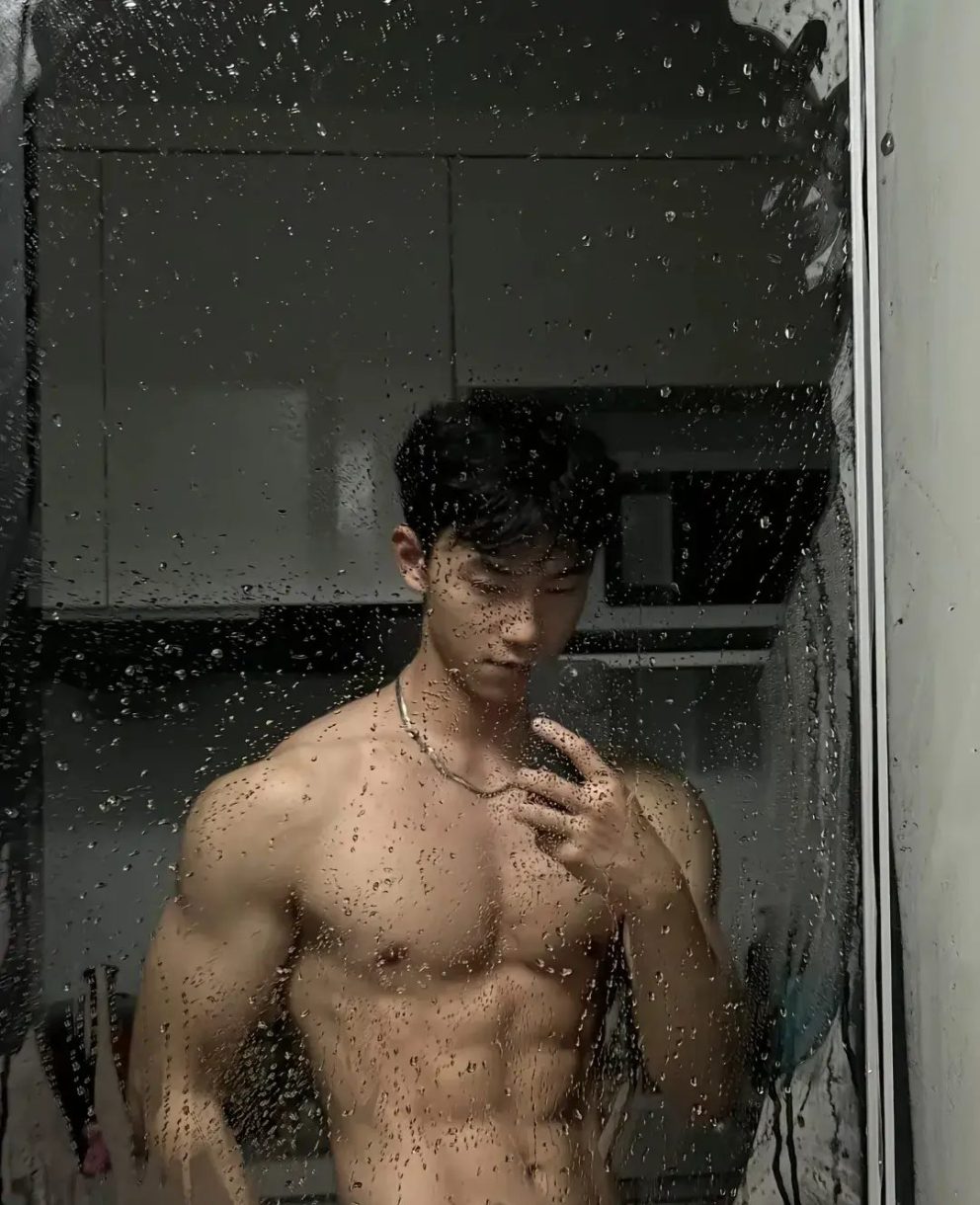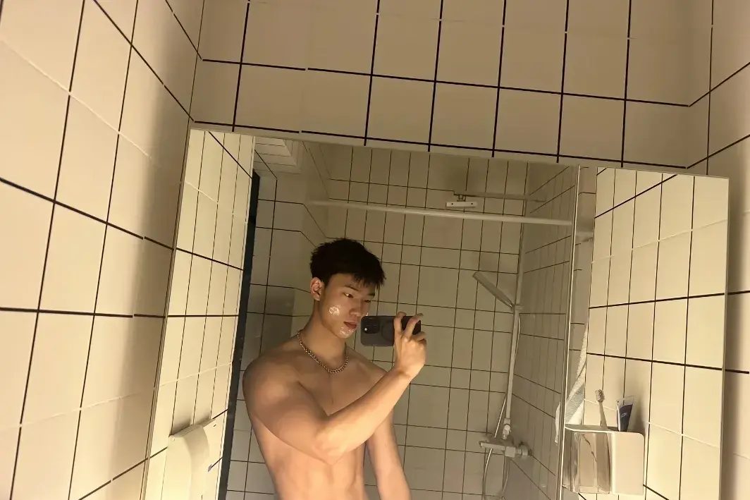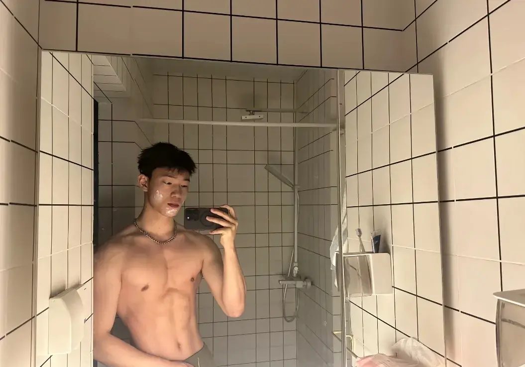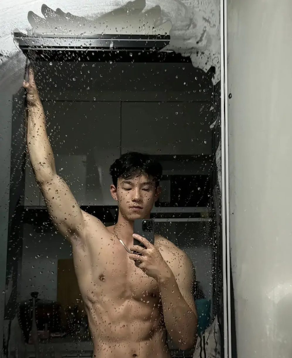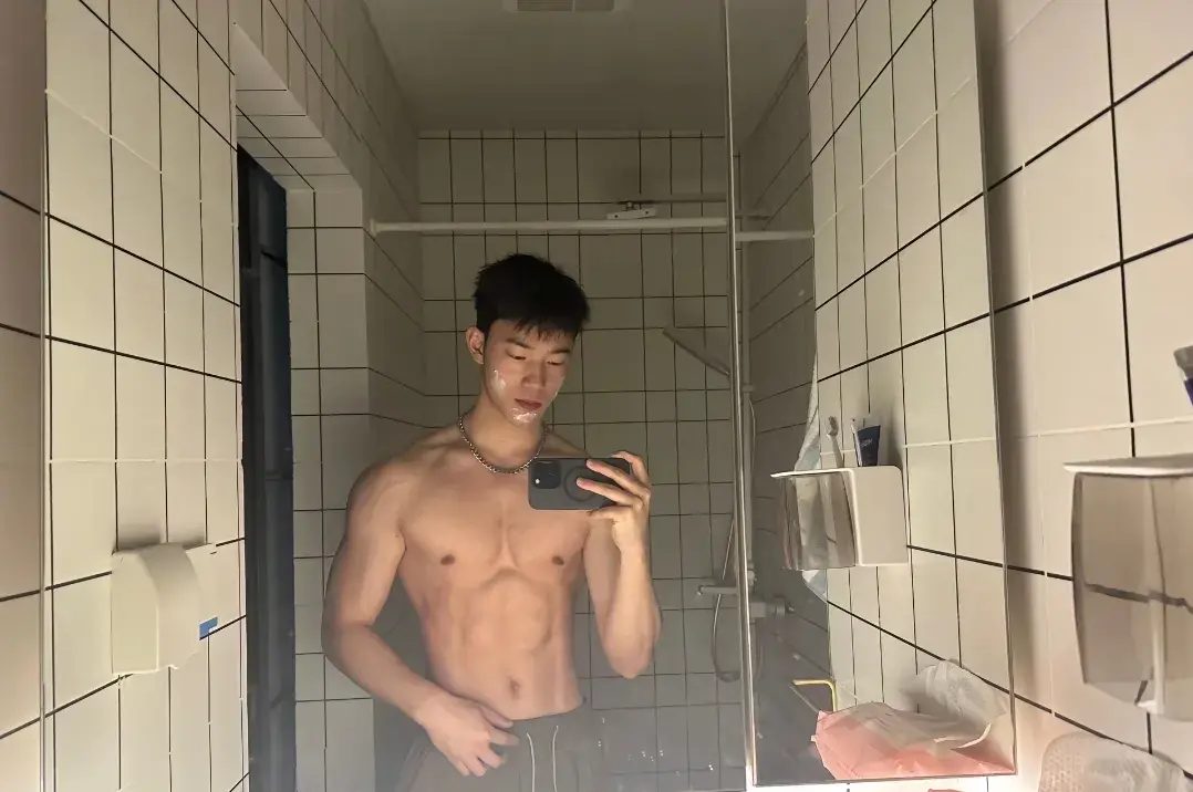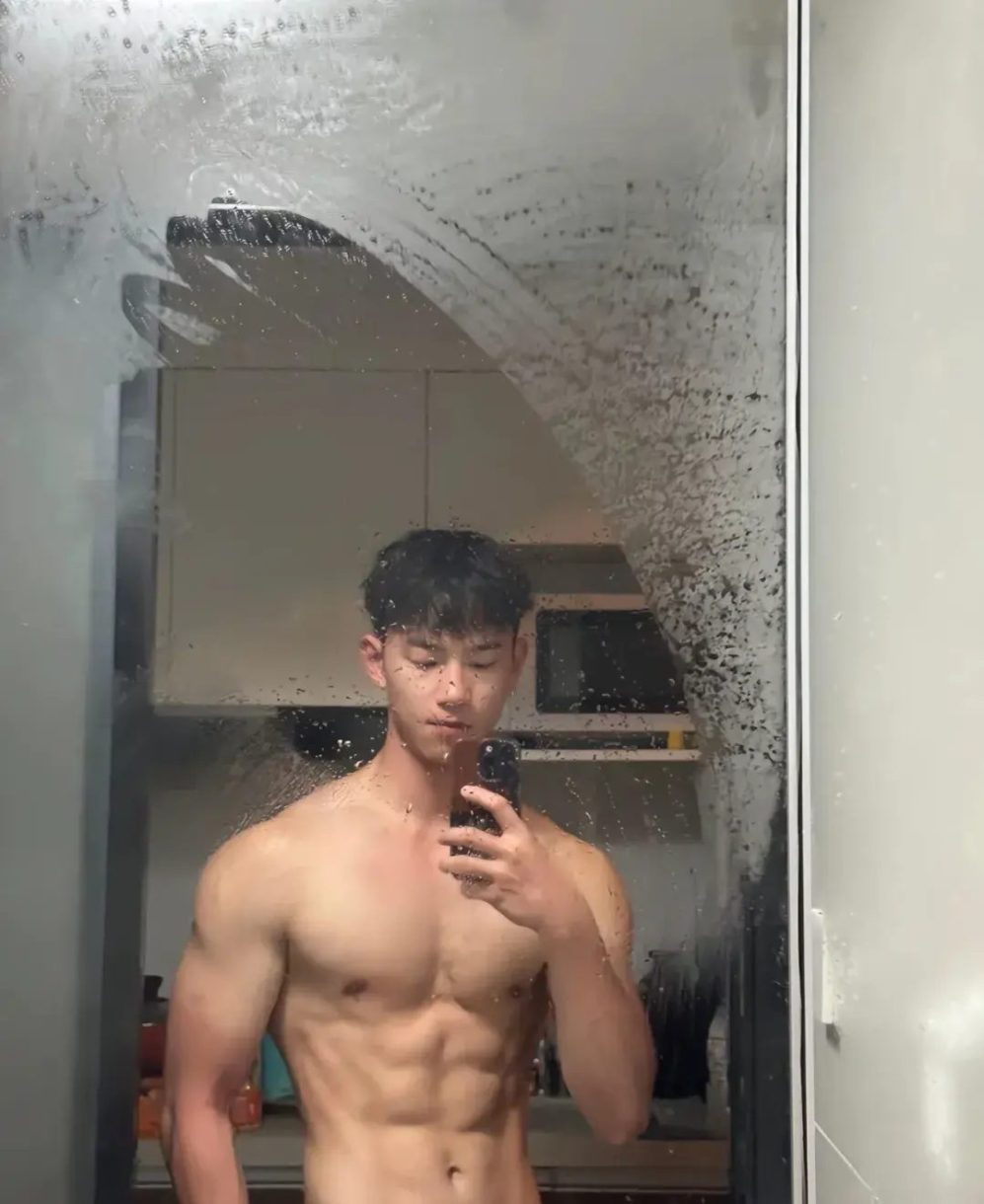 小哥哥家里面的这块镜子挺不错的,洗完澡就可以直接对镜拍一下他性感的身材了,每天的健身练习,不就是为了拍照吗?所以这面镜子是真的刚刚好。