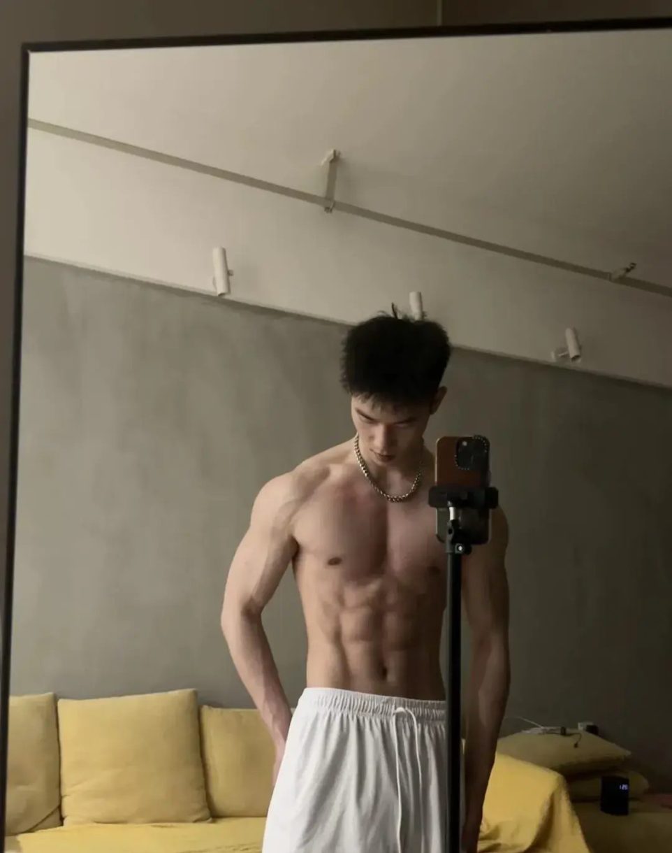 这样发达好看的肌肉,很难想像小哥哥是00后的鲜肉帅哥,不过话说回来,现在的00都是长得人高马大的,身材壮实,若是没有练出肌肉或是腹肌,那才是会有些奇怪的。