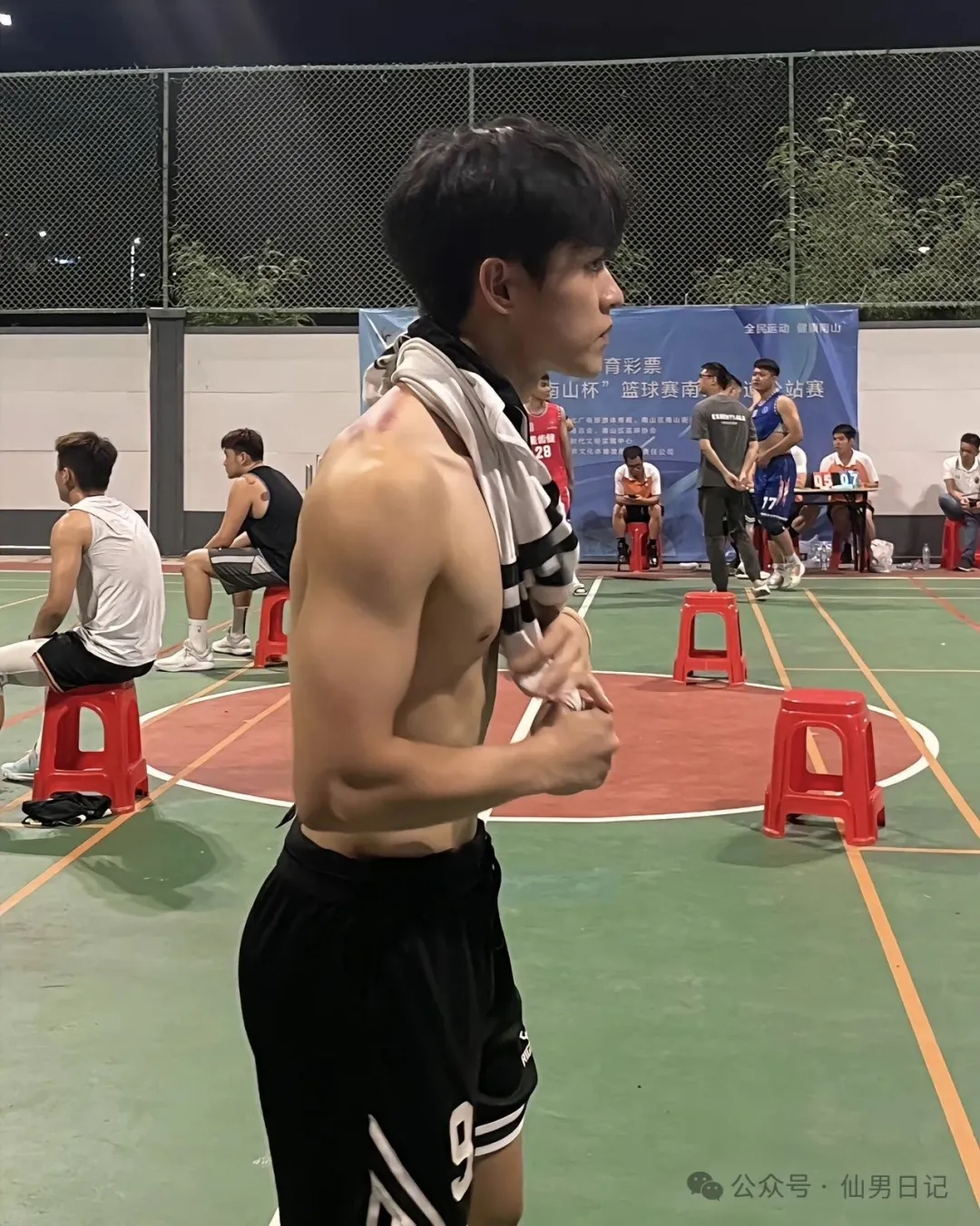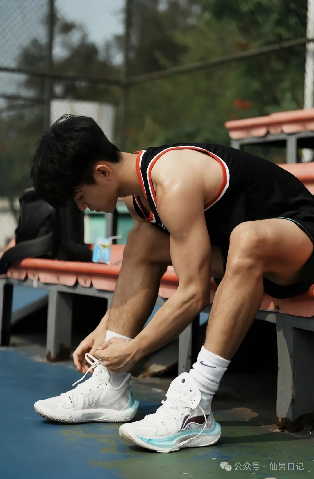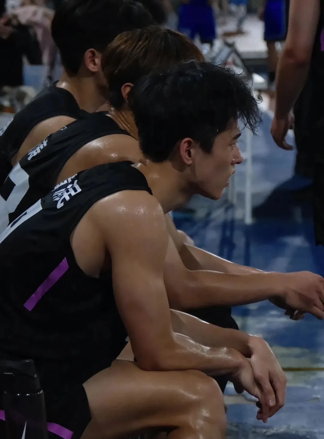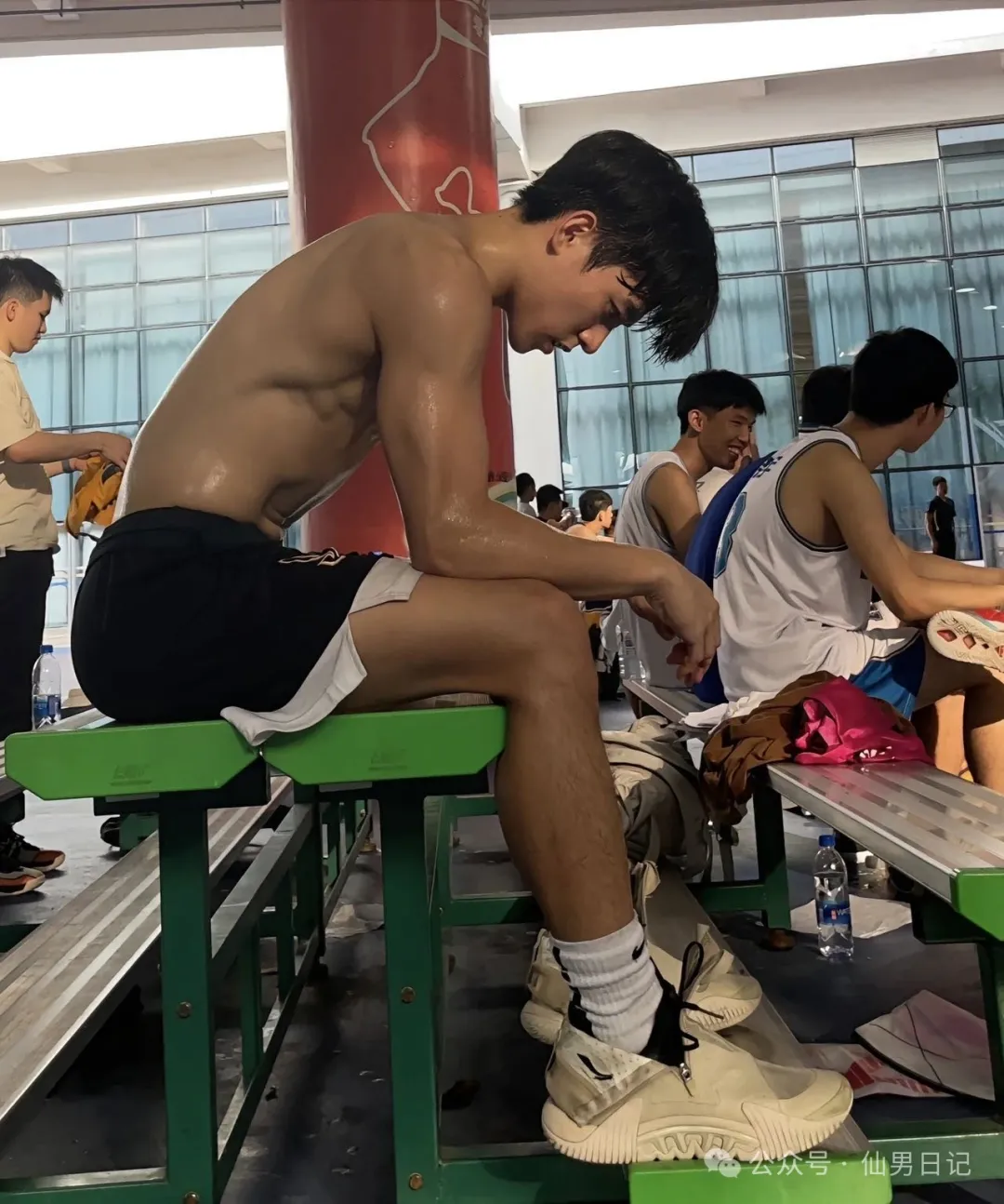 即便是候场的时候,也十分引人注目。尤其是看他汗流浃背的样子,浸透了头发和背心,浑身上下散发着浓浓的荷尔蒙。这个视角看,他高挺的鼻梁和优越的下颌线都十分精致,俯身系鞋带的瞬间也是帅得恰到好处!