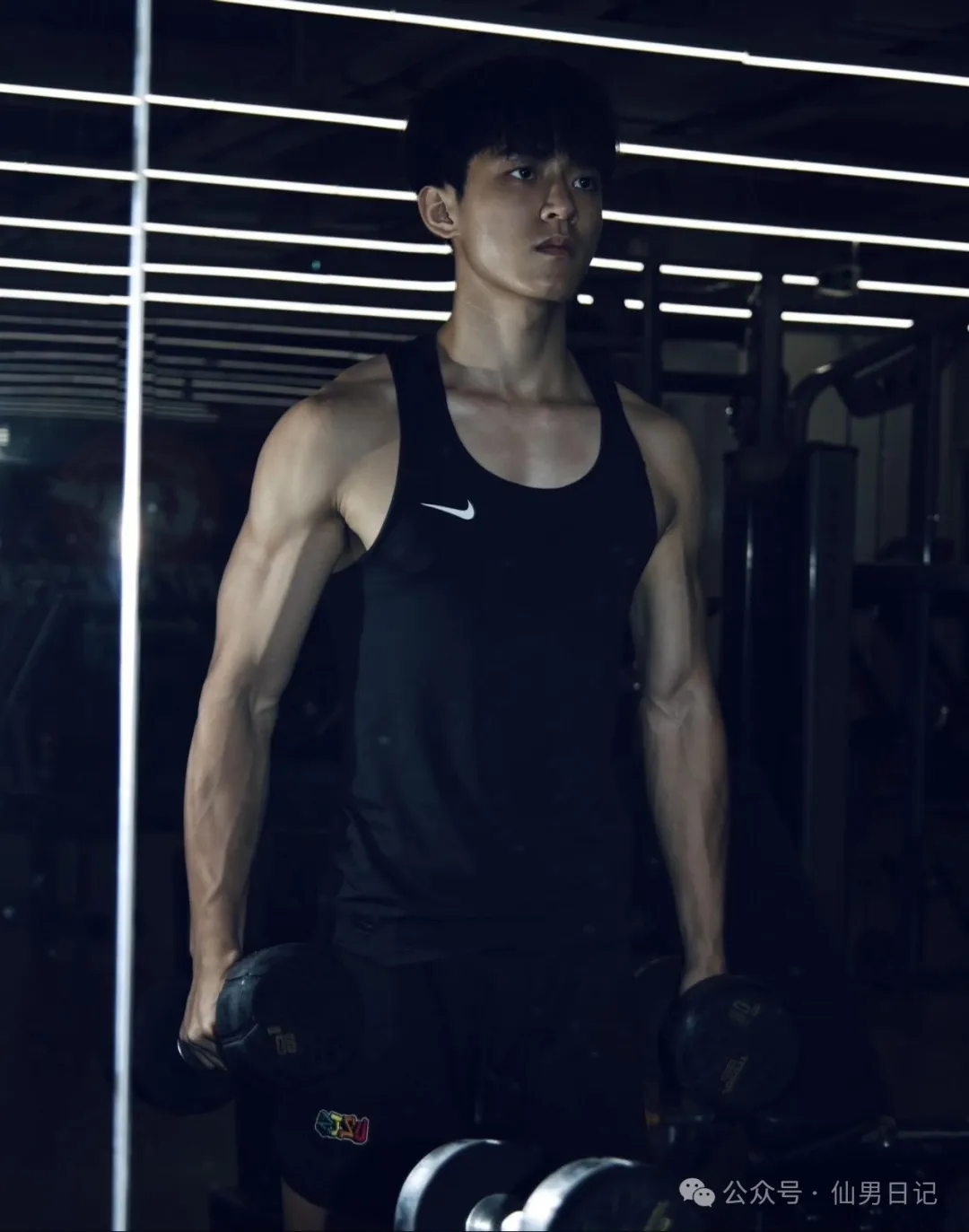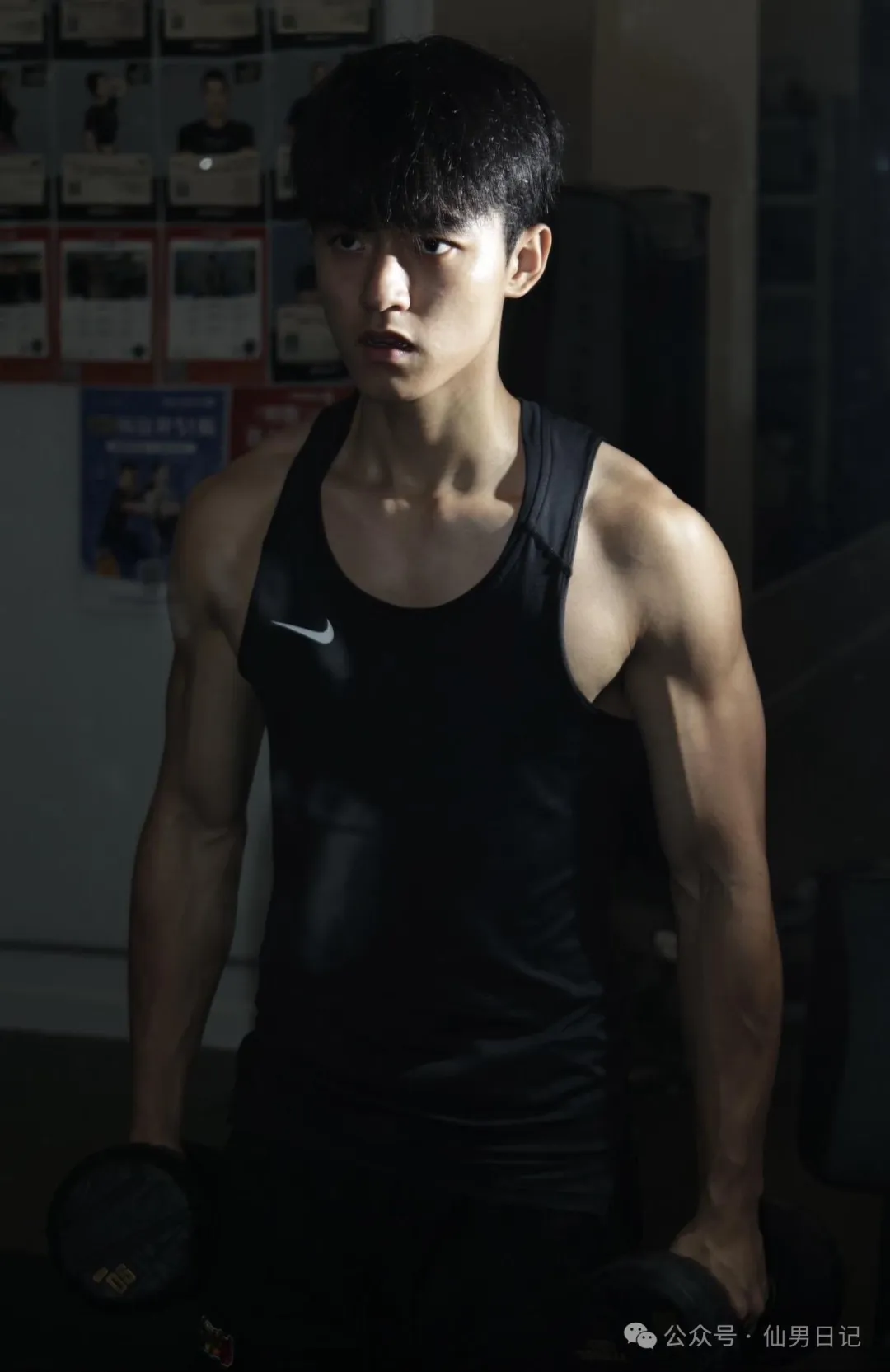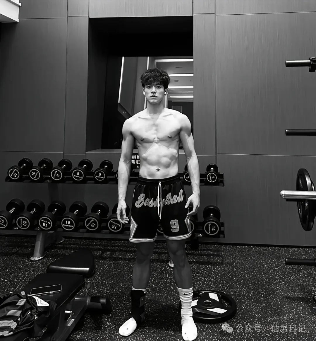 日常生活中他和其他男大学生也是没什么区别。闲来无事就在健身房里疯狂操练。