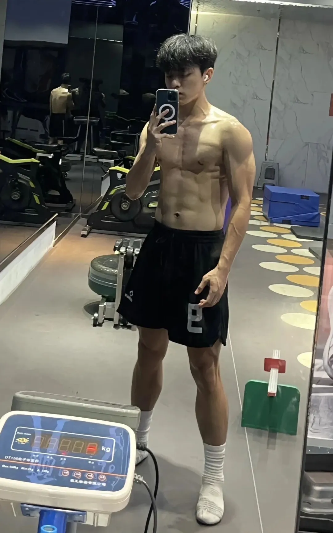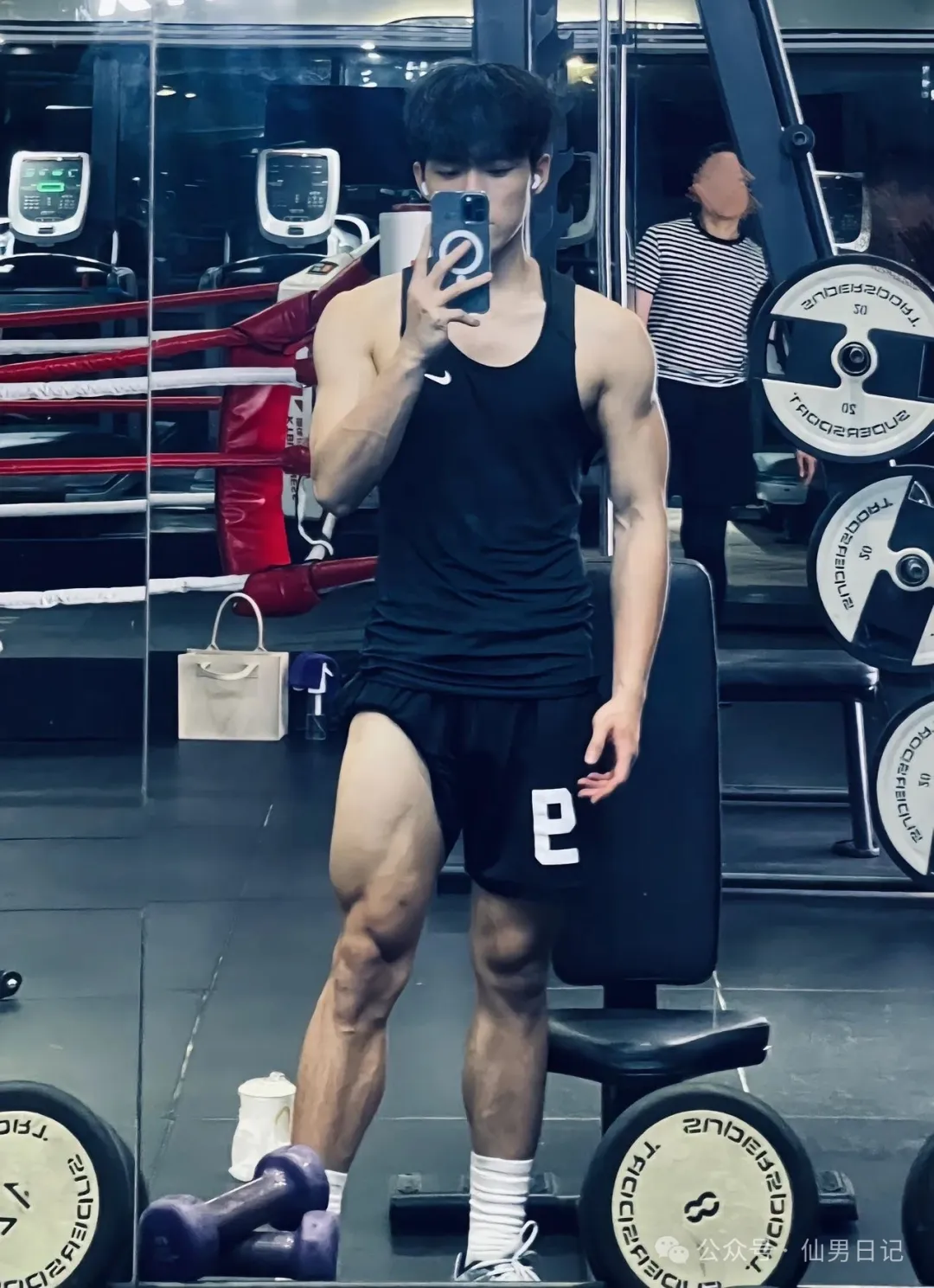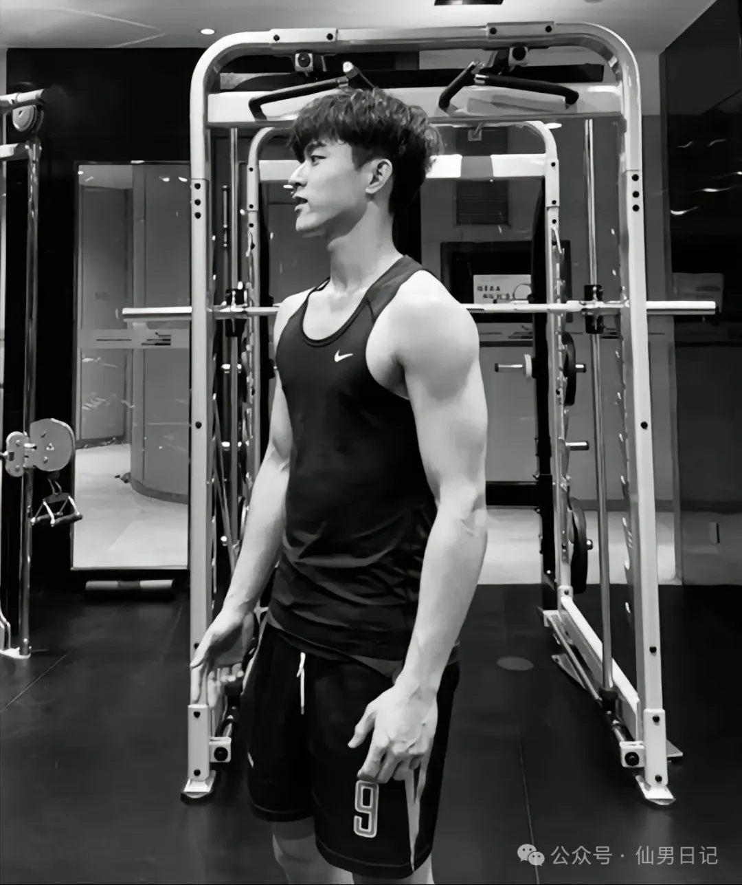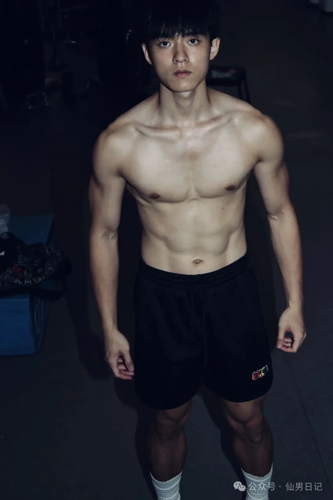 日常生活中他和其他男大学生也是没什么区别。闲来无事就在健身房里疯狂操练。