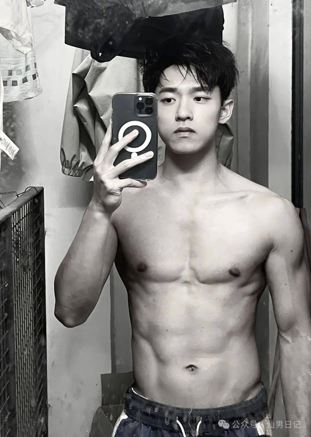 然后用相机记录自己的美好身材。sir私心觉得,小哥哥和黑白光影的适配度超级高,凭空为他增添了几分帅气!