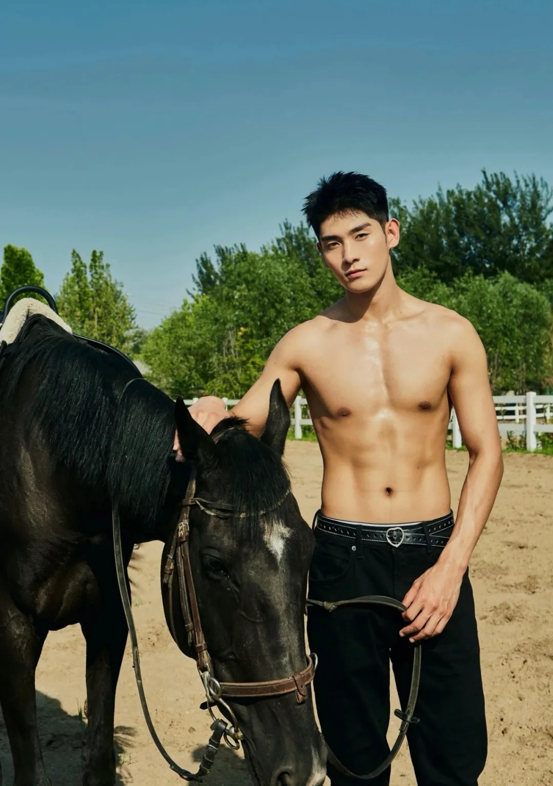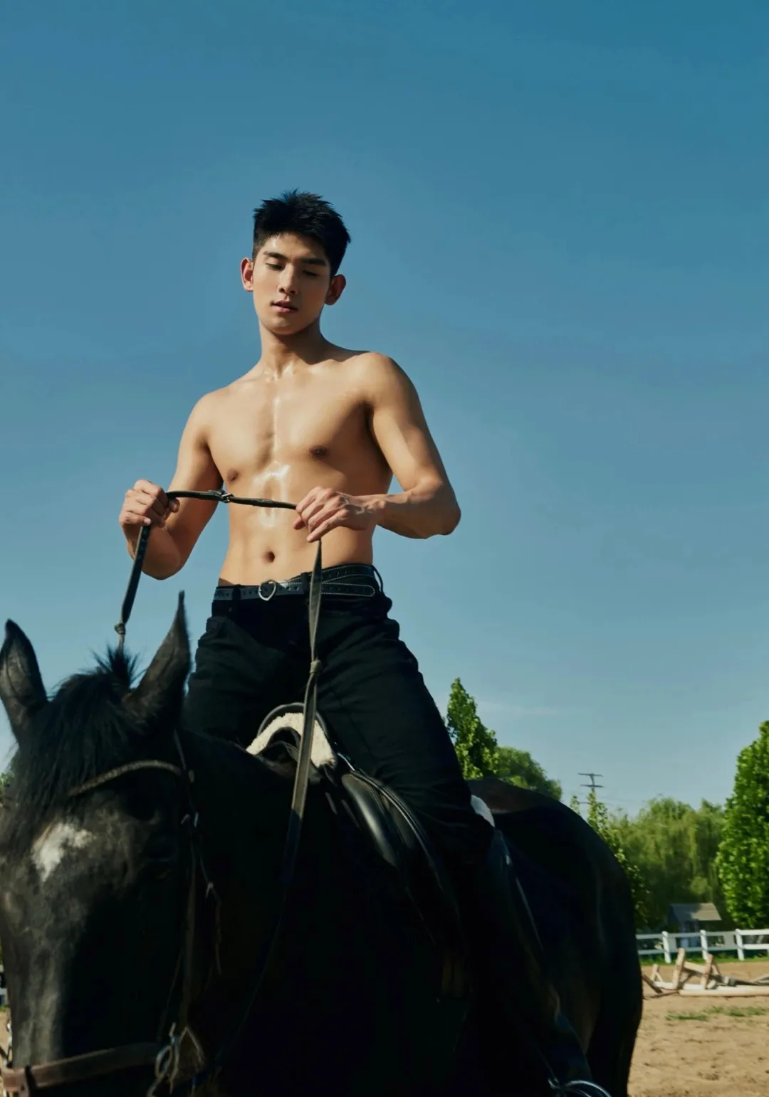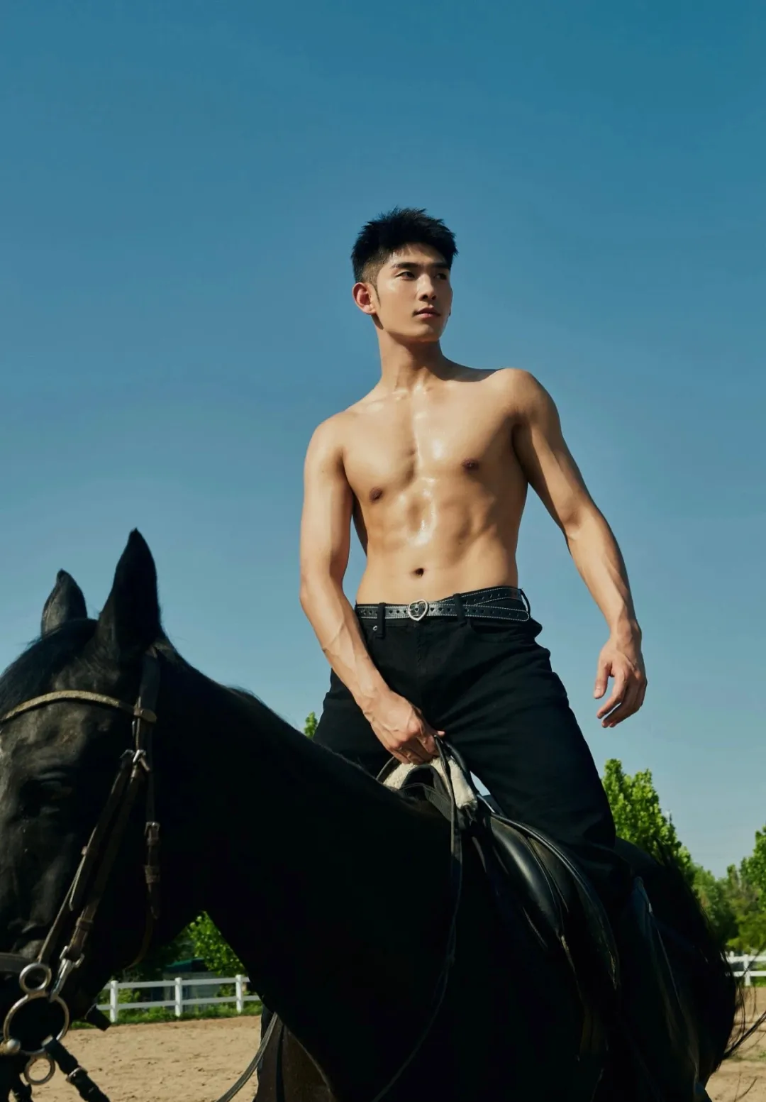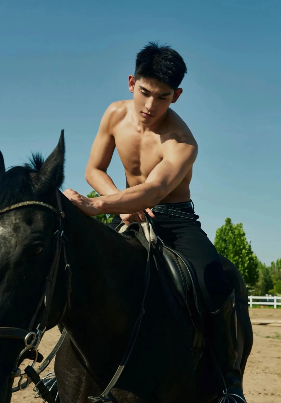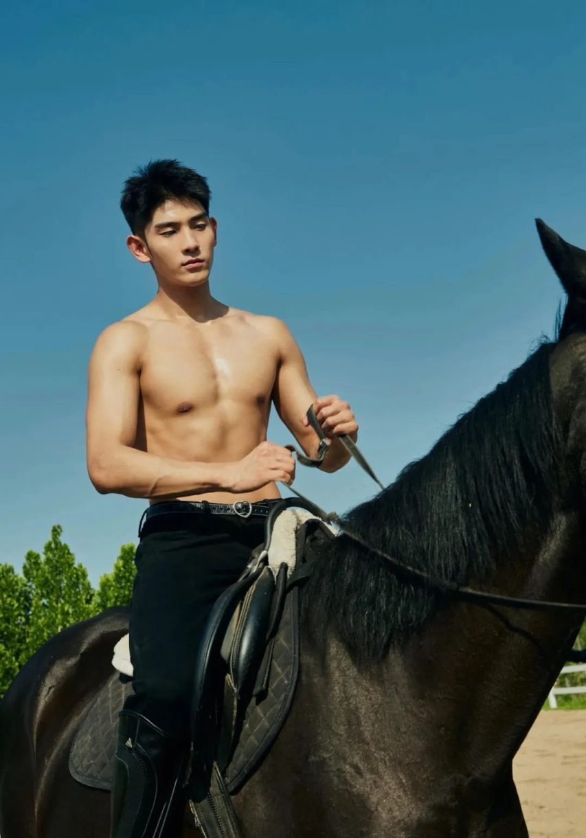 第一眼看到他骑在马背上的场景时,我就知道,这就是我要和大家分享的魅力瞬间。他那挺拔的身姿,自信的神态,仿佛与马融为一体,一身薄肌的他骑在马背上,这不是王子,而是你们的“小男友”哈哈哈