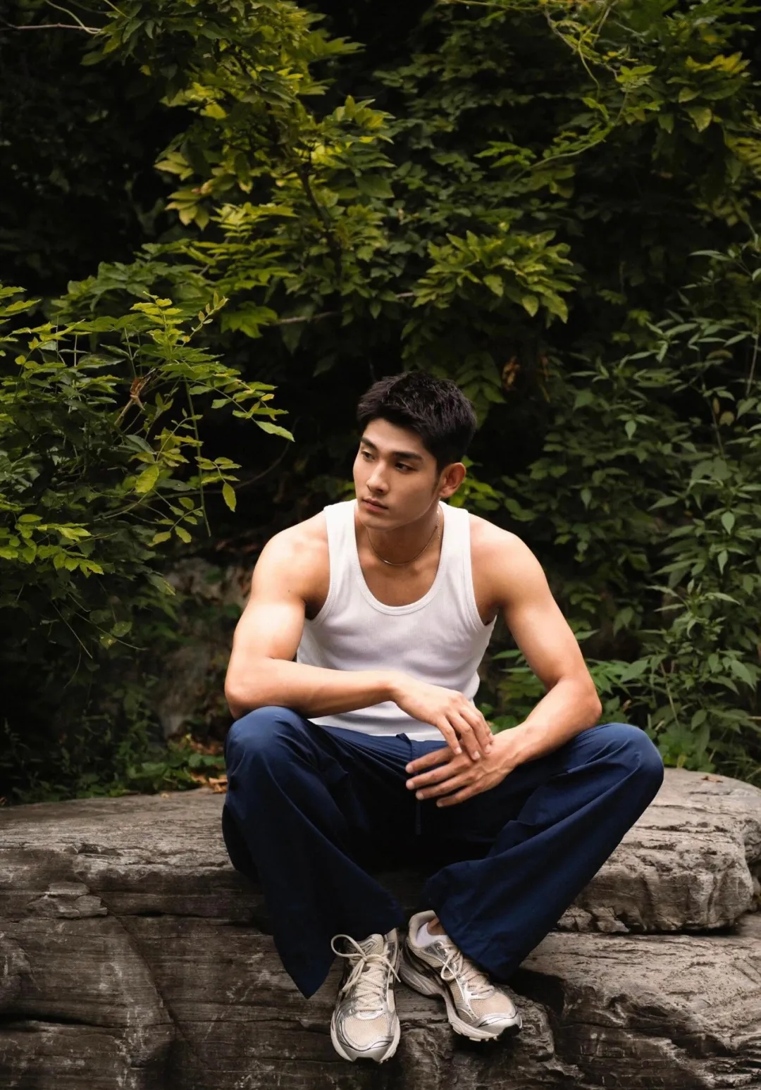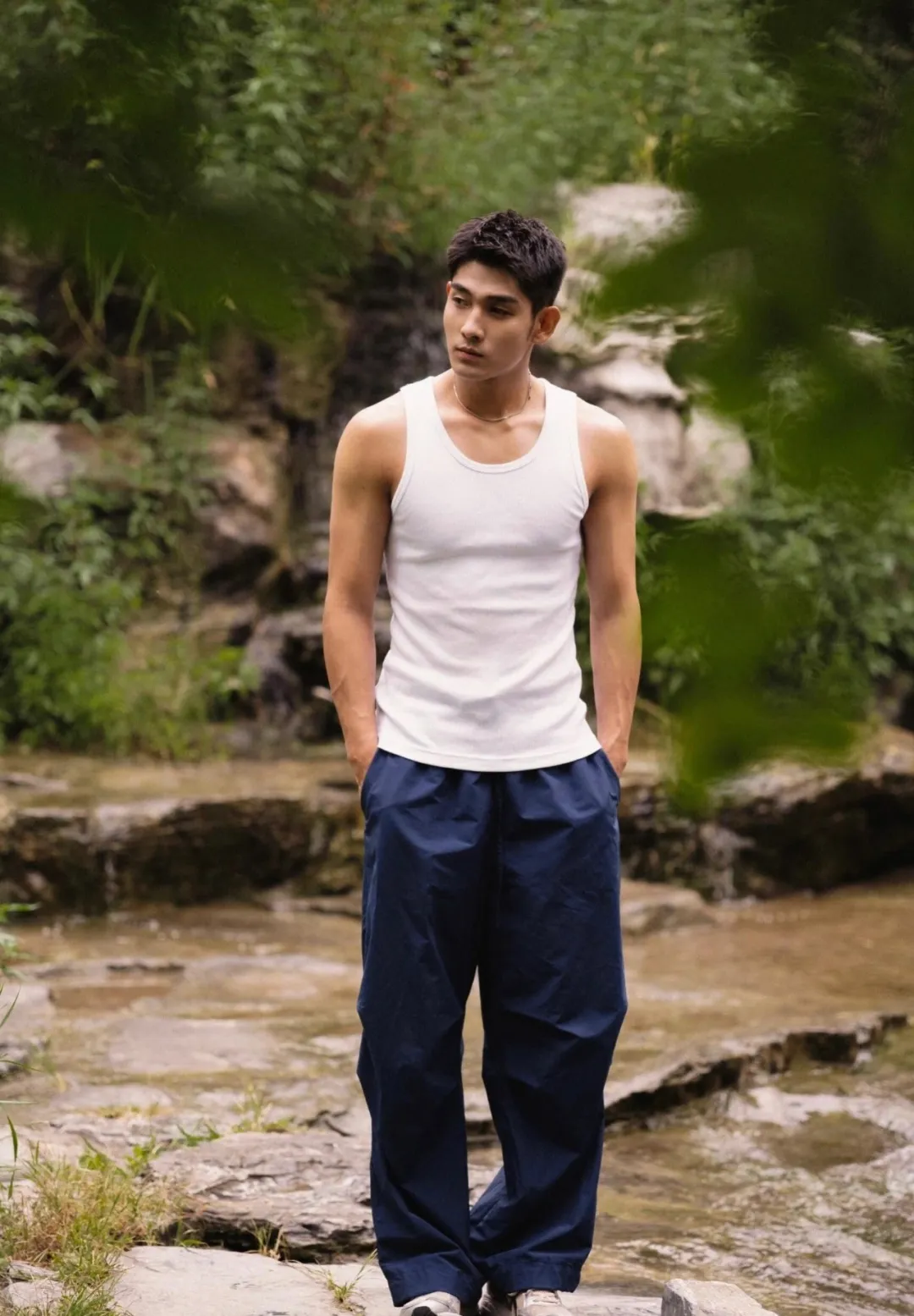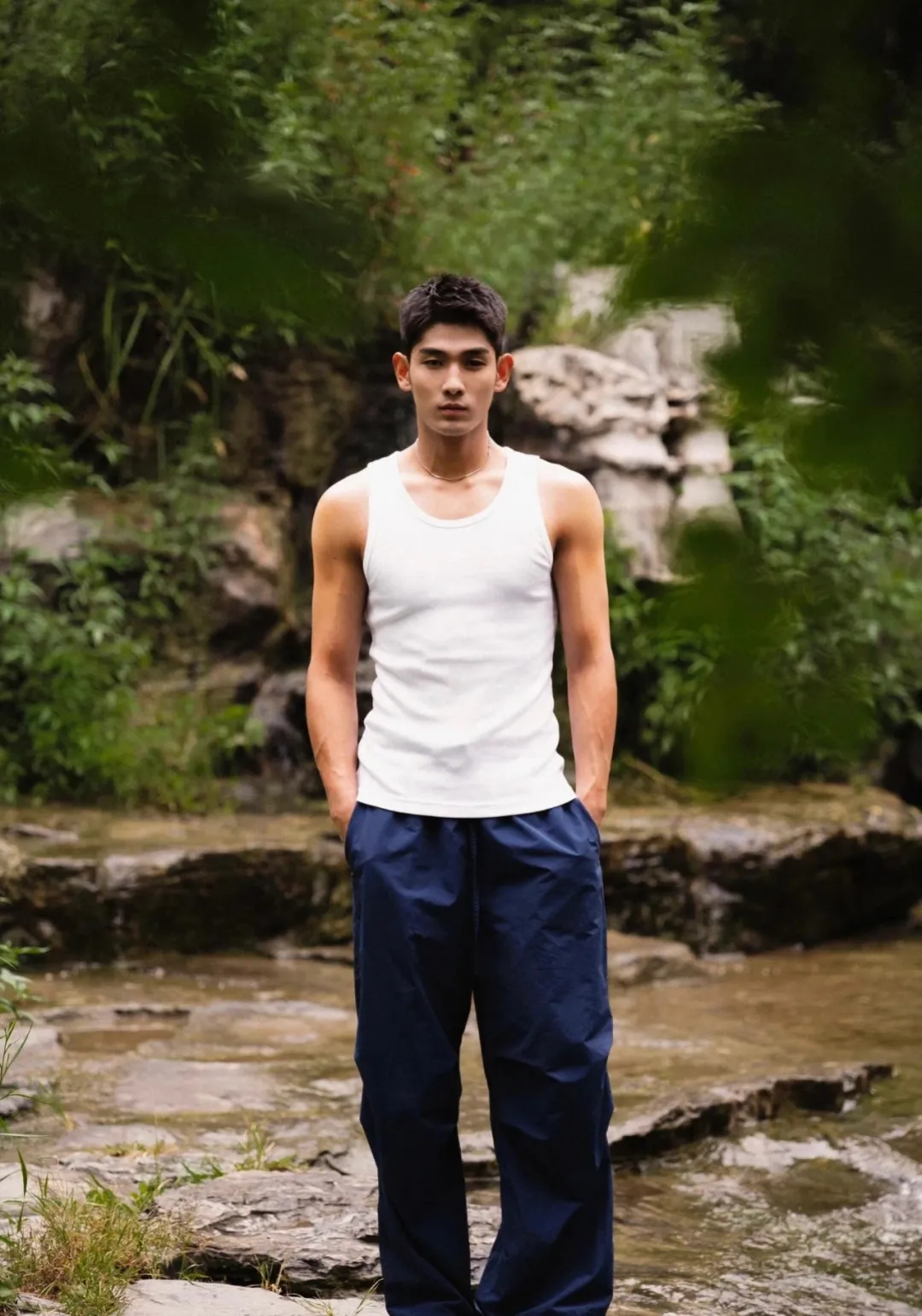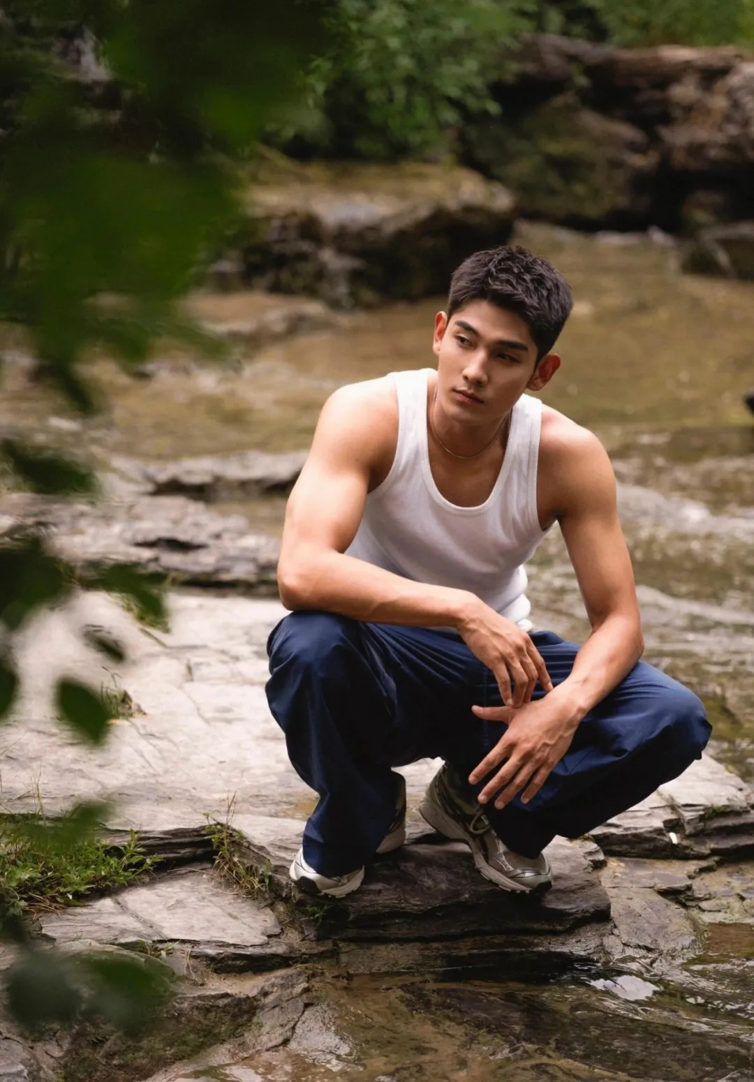 再看看他穿背心的照片,简直绝了妥妥的影视剧男猪脚既视感。