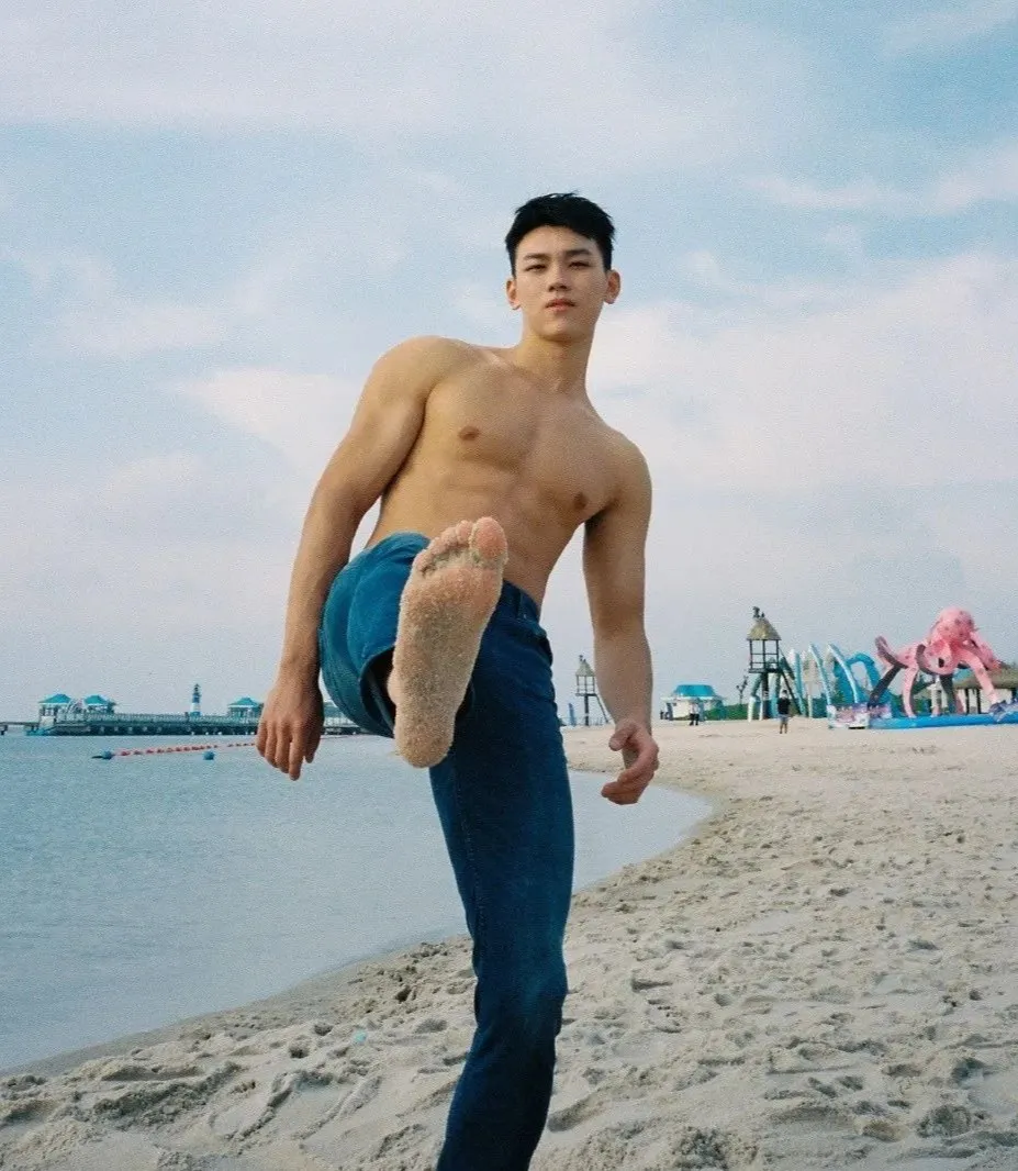 赵仁杰也是被风度挖掘出来的男艺人毫不吝啬的展示自己的肌肉身材