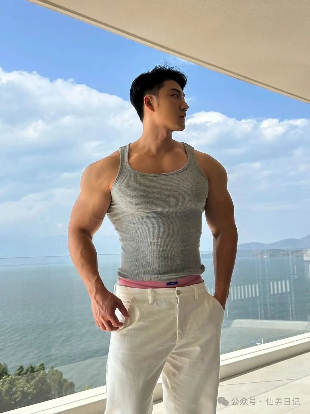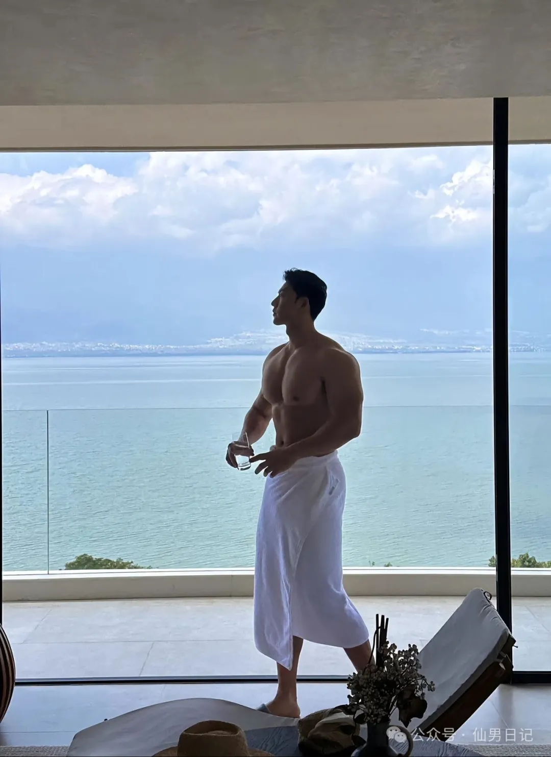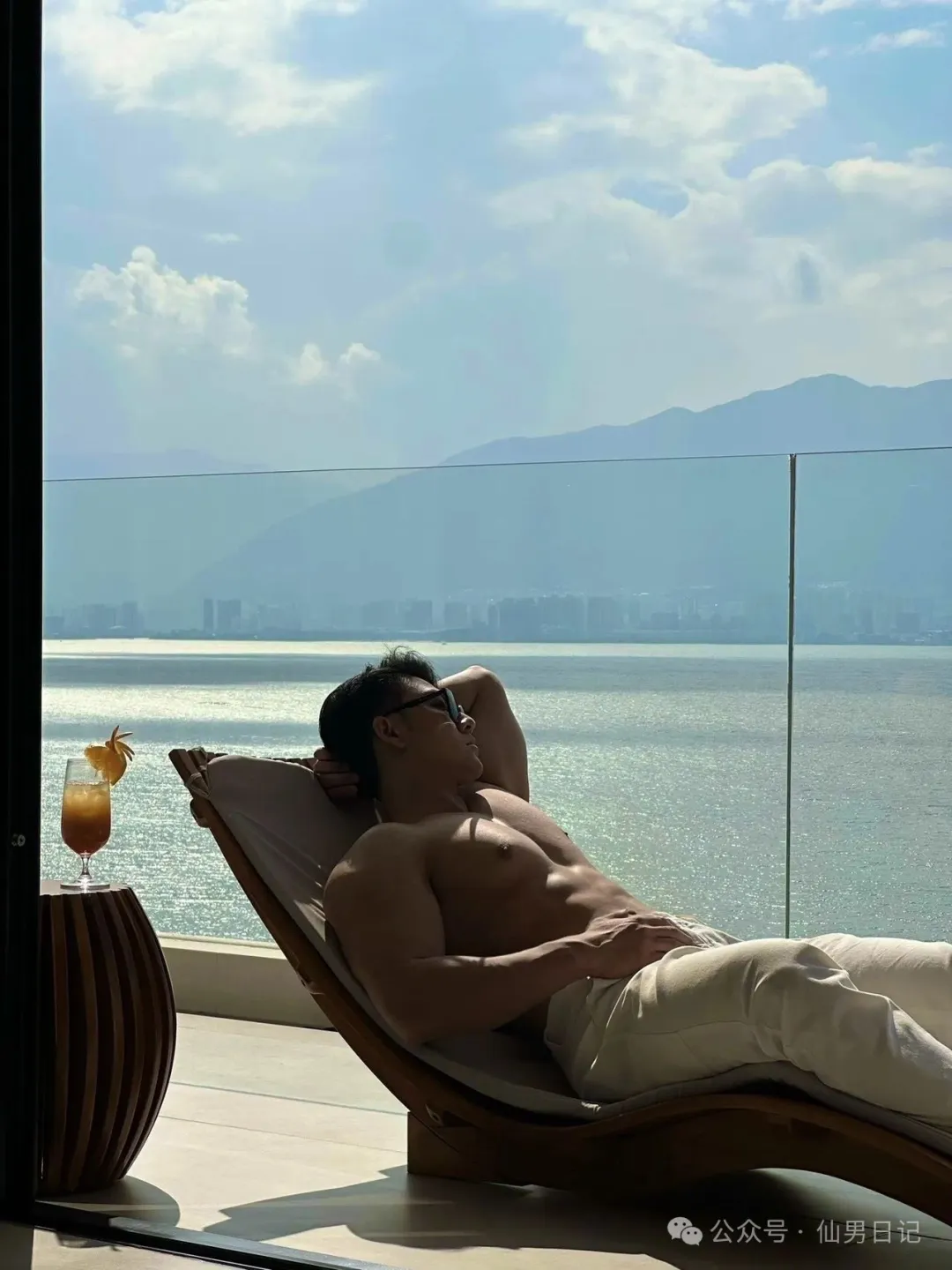 sir之所以说他有肌肉名媛的潜质,看看他社交平台上po出的日常就能发现端倪,到处都是各种旅游休闲的缩影。海景房落地窗和肌肉男的极致诱惑,虽然只是半裸出镜,但是身材真的是好到爆!躺在海边的长椅上,阳光照在他的胸肌上,视觉效果直接满分!