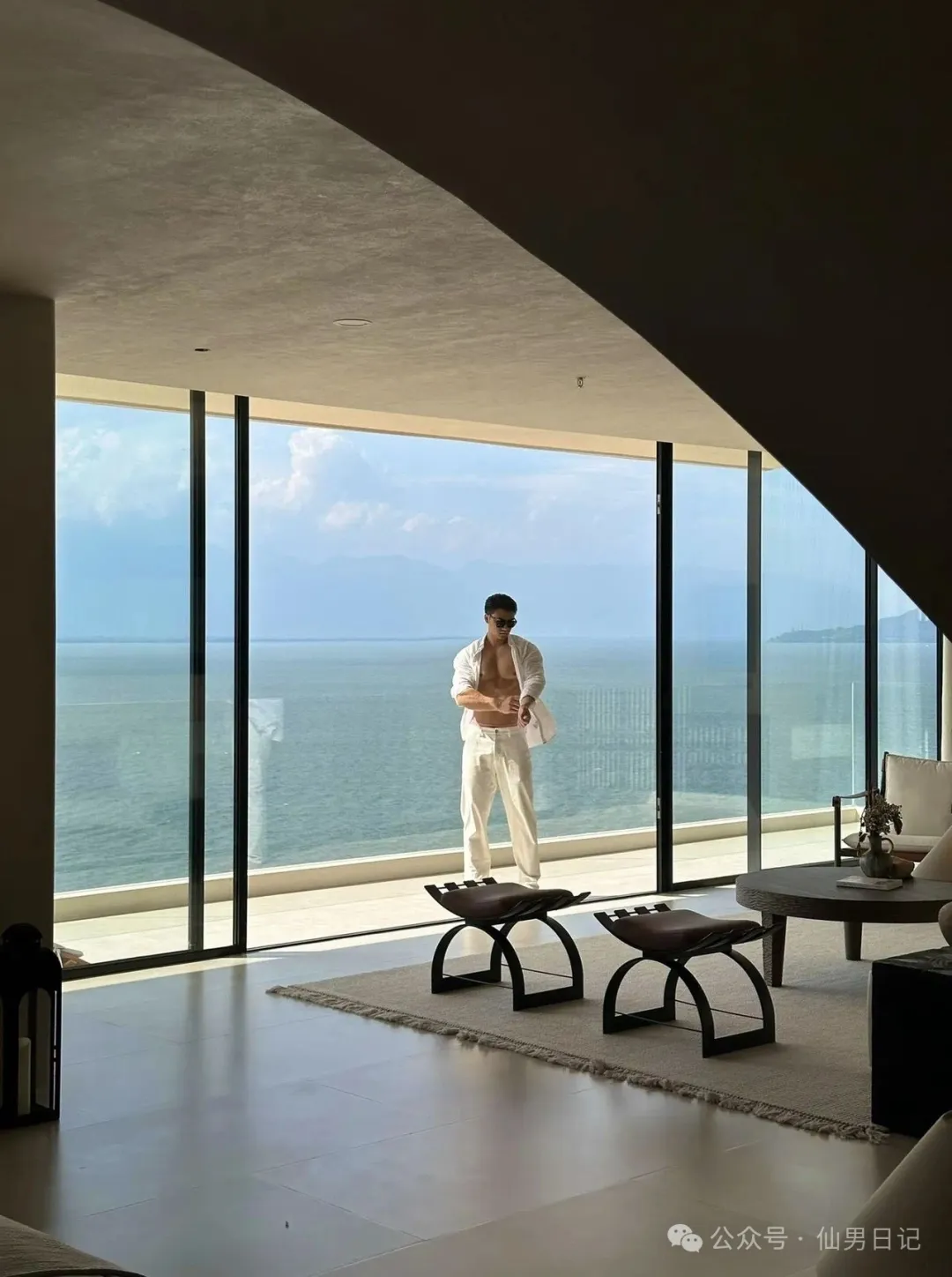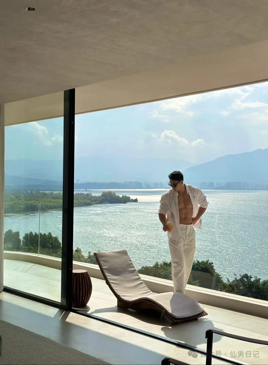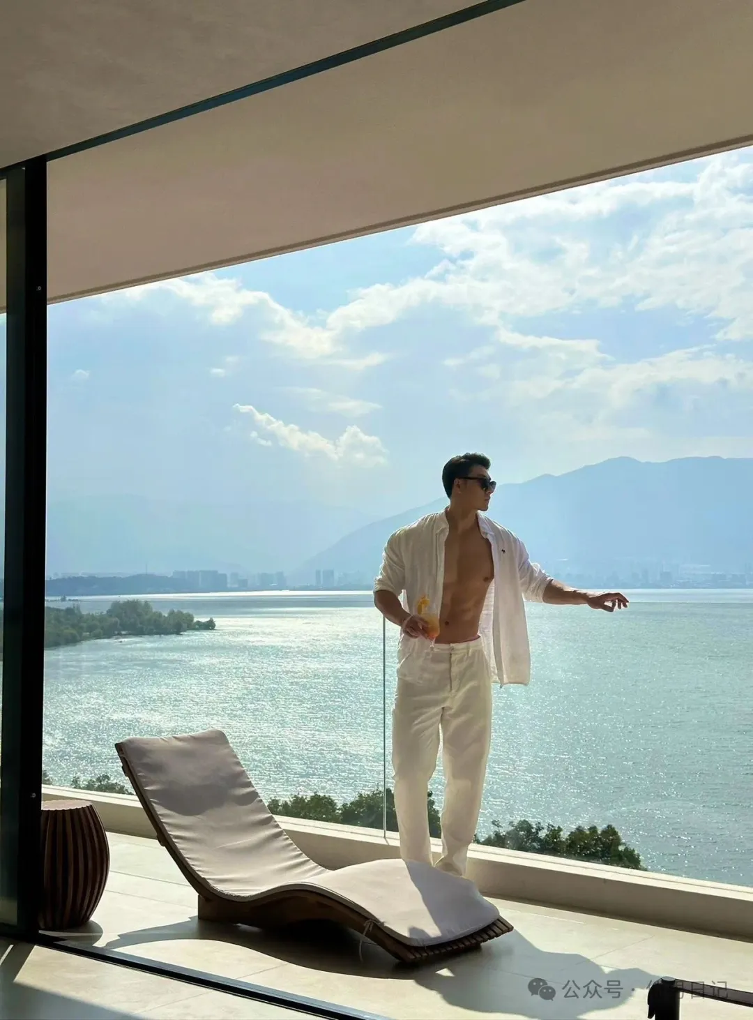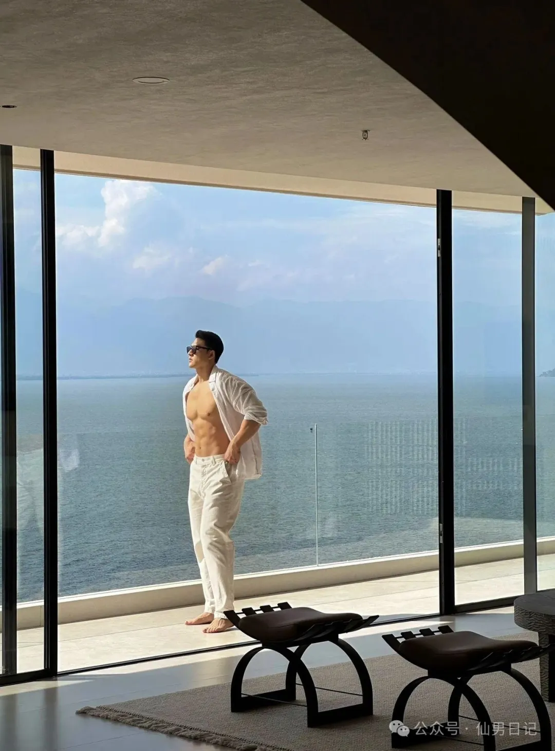 sir之所以说他有肌肉名媛的潜质,看看他社交平台上po出的日常就能发现端倪,到处都是各种旅游休闲的缩影。海景房落地窗和肌肉男的极致诱惑,虽然只是半裸出镜,但是身材真的是好到爆!躺在海边的长椅上,阳光照在他的胸肌上,视觉效果直接满分!