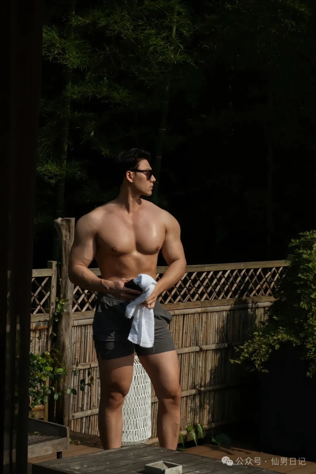 hello宝宝们!每天晚上8点来仙男日记看帅哥啦~前段时间一个男模小哥哥在酒店被偷拍瞬间火了!黝黑的肤色,看得人热血沸腾。肌肉线条流畅,健康而又充满力量感。小声哔哔一句,这个视角看,他的胸肌太性感了!尽管浴巾包裹住了他的下半身,但仍可以看出他拥有着宽阔的肩膀和健硕的胸肌。他的手臂看起来也十分结实,充满力量感。最重要的是,他的翘臀太明显了……sir扒了一下他的社交平台,发现这个小哥哥作为男模,甚至有些肌肉名媛的特质,真的超级爱!首先这组写真已经是可以封神的程度了。昏暗的光线下,衬托着肌肉线条格外性感,犹抱琵琶半遮面的视角,反而让人充满遐想!