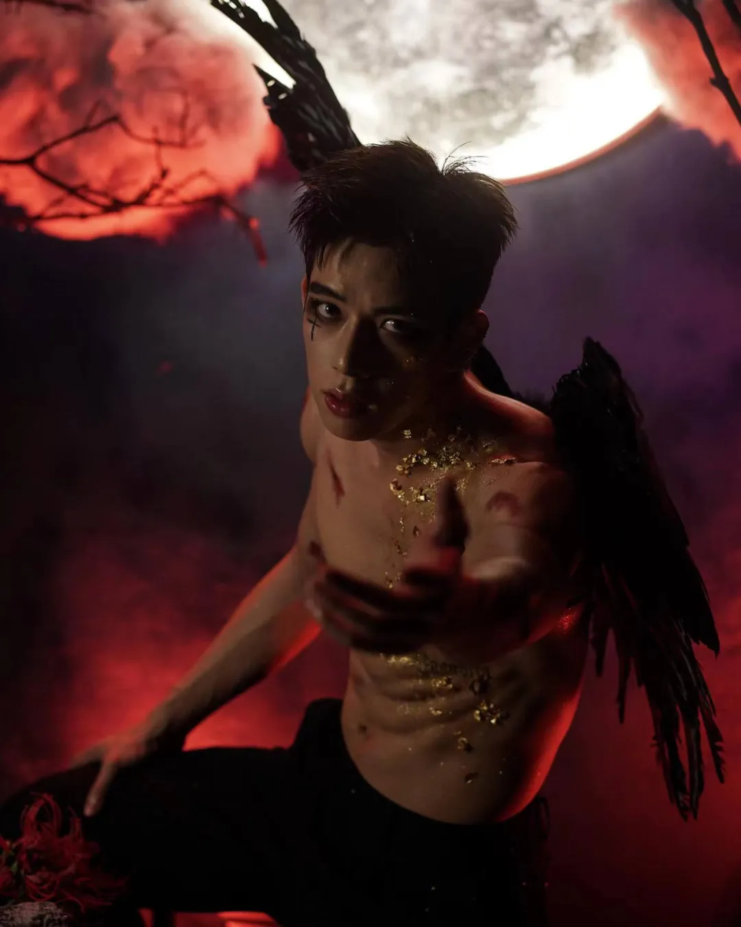保持寸头造型的他cos恶魔时,更是高冷十足,霸气侧漏,更加让人不敢轻易靠近。 而被黑暗和月光笼罩下的他,看上去却又是那么孤独和落寞。