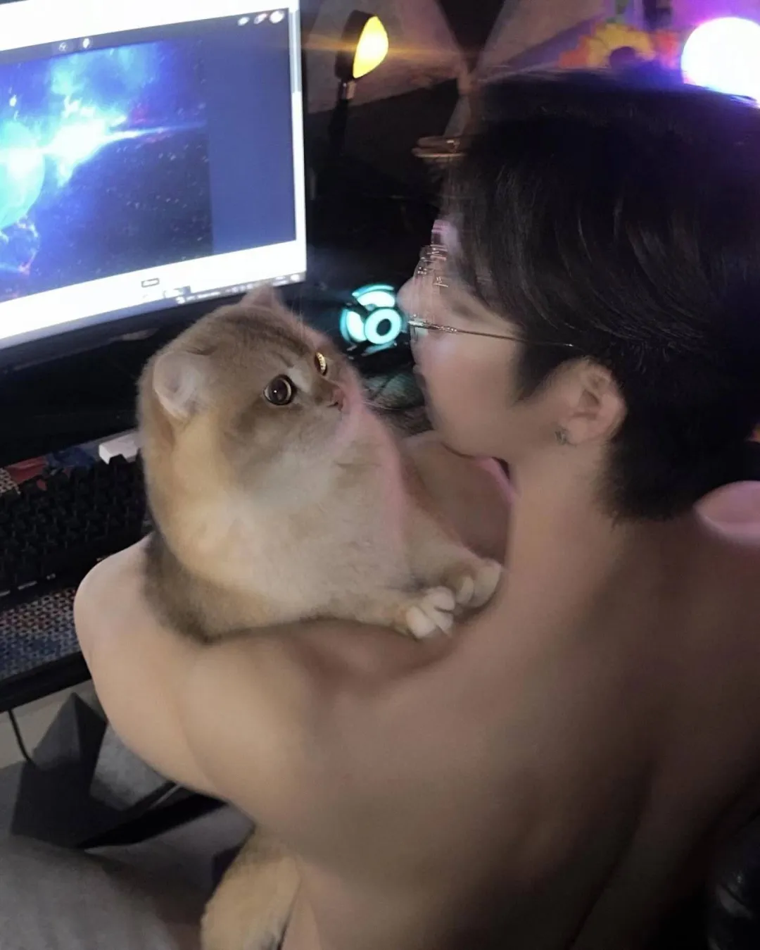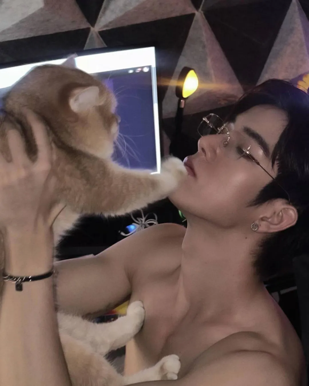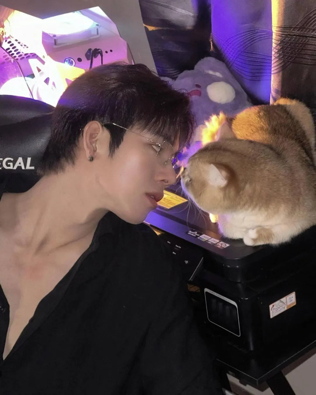 私底下跟自家的猫猫相处模式与拍摄杂志和电视剧时截然相反,不管是跟猫猫贴贴还是对视,都满是温柔和疼爱,像是在说:做我的猫,你想要的我全都给你。 甚至他还专门创建了一个账号频道来记录与猫猫的日常,荧幕前后形象反差极大。
