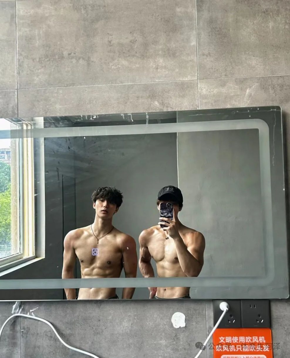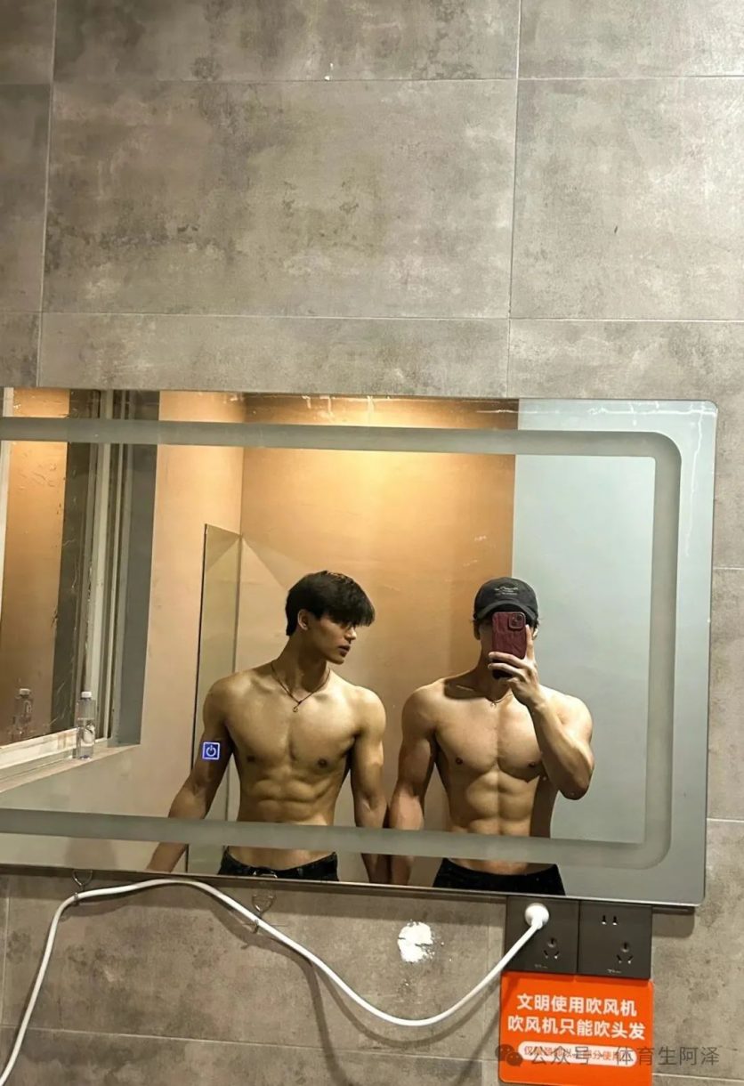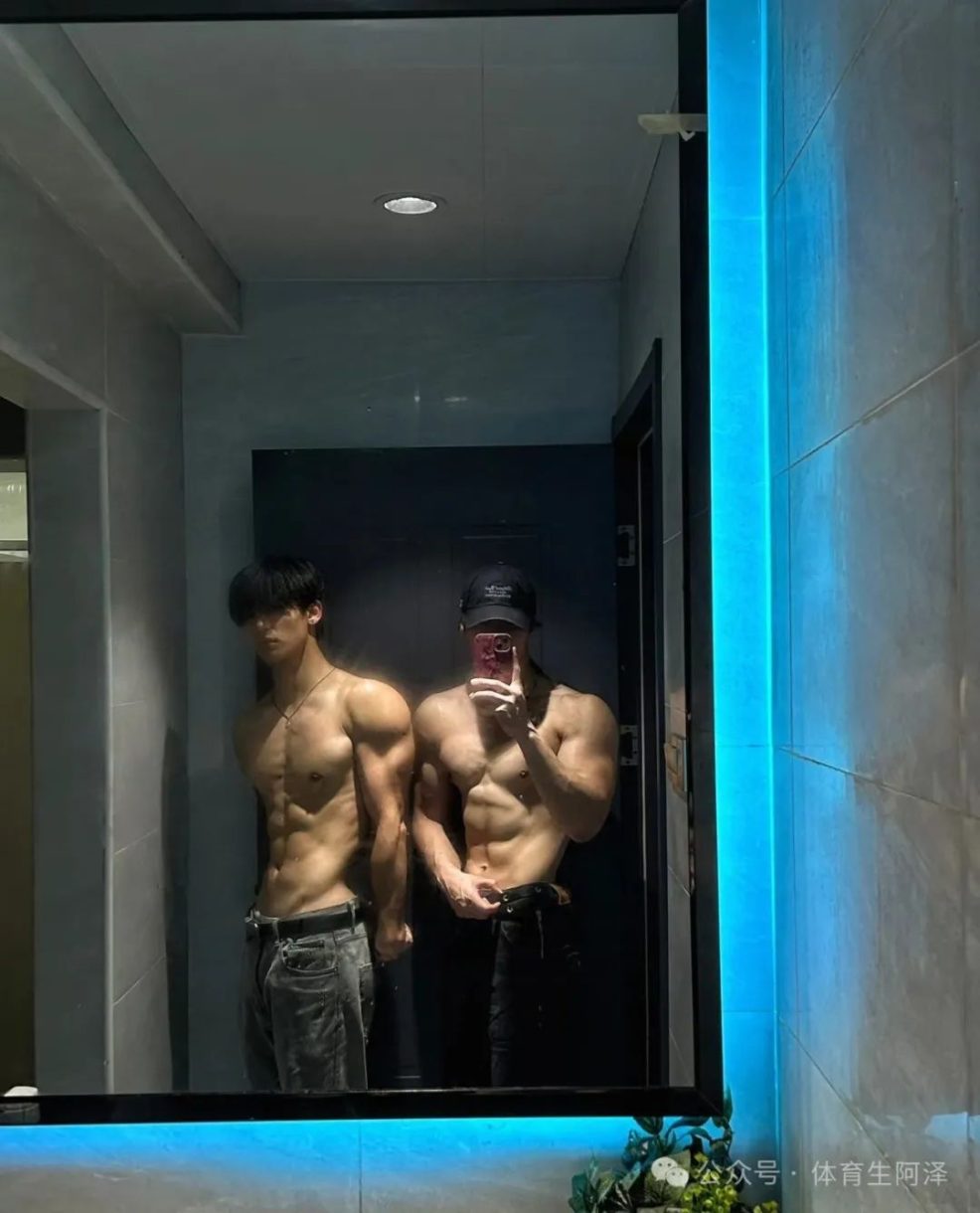 哈喽,这里是大家的阿泽哦!今天要介绍的男主不同于往常的一个,而是一个宿舍的两个室友,两个都来自北体,而且都喜欢健身。吃饭健身都是形影不离,阿泽都怀疑他们是不是偷偷处对象了啊哈哈哈哈哈。但是要是处也没关系,阿泽也可以加入进来。俗话说,三折叠怎么折都有面哈哈哈哈哈。而且健身的成果非常的哇塞,颜值高不说了,身材完全是理想身材啊!标准的八块腹肌。以及挺拔的185身高。加上刀削般的脸庞。这放在哪都是惊呼一片啊!阿泽就是被这张图吸引的,这个身材两个男生都非常的哇塞,标准的薄肌身材,不同于那些健身房的吃蛋白粉增肌的死肌肉。阿泽可以从他们的身上感受到力量。这种的感觉每天都在锻炼。而且肌肉在不断的压缩,虽然不是特别的壮,但是力量感一点都不弱。而且这个颜值也是没得说了,尤其是阿泽看到这个右边带帽子的男生。就冲这个氛围感,阿泽都可以想像到脸有多么帅了啊哈哈哈哈。